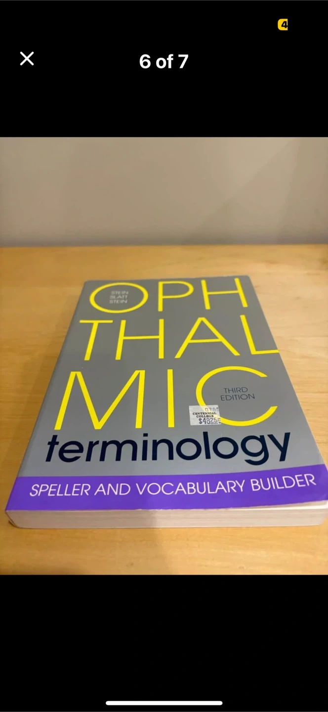 Selling a copy of Ophthalmic Terminology, Third Edition by Stein, Slatt, and Stein. It's a helpful speller and vocabulary builder for anyone in the field. Pickup in Brampton📍 Please checkout my other listings ℹ thanks 😊