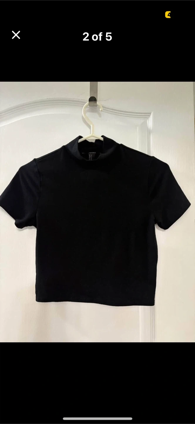 Selling a Forever 21 black mock neck crop top in size small. It's in great condition and would be a stylish addition to your wardrobe! The material is soft and comfortable, perfect for everyday wear. Pickup in Brampton📍 Please checkout my other listings ℹ thanks 😊