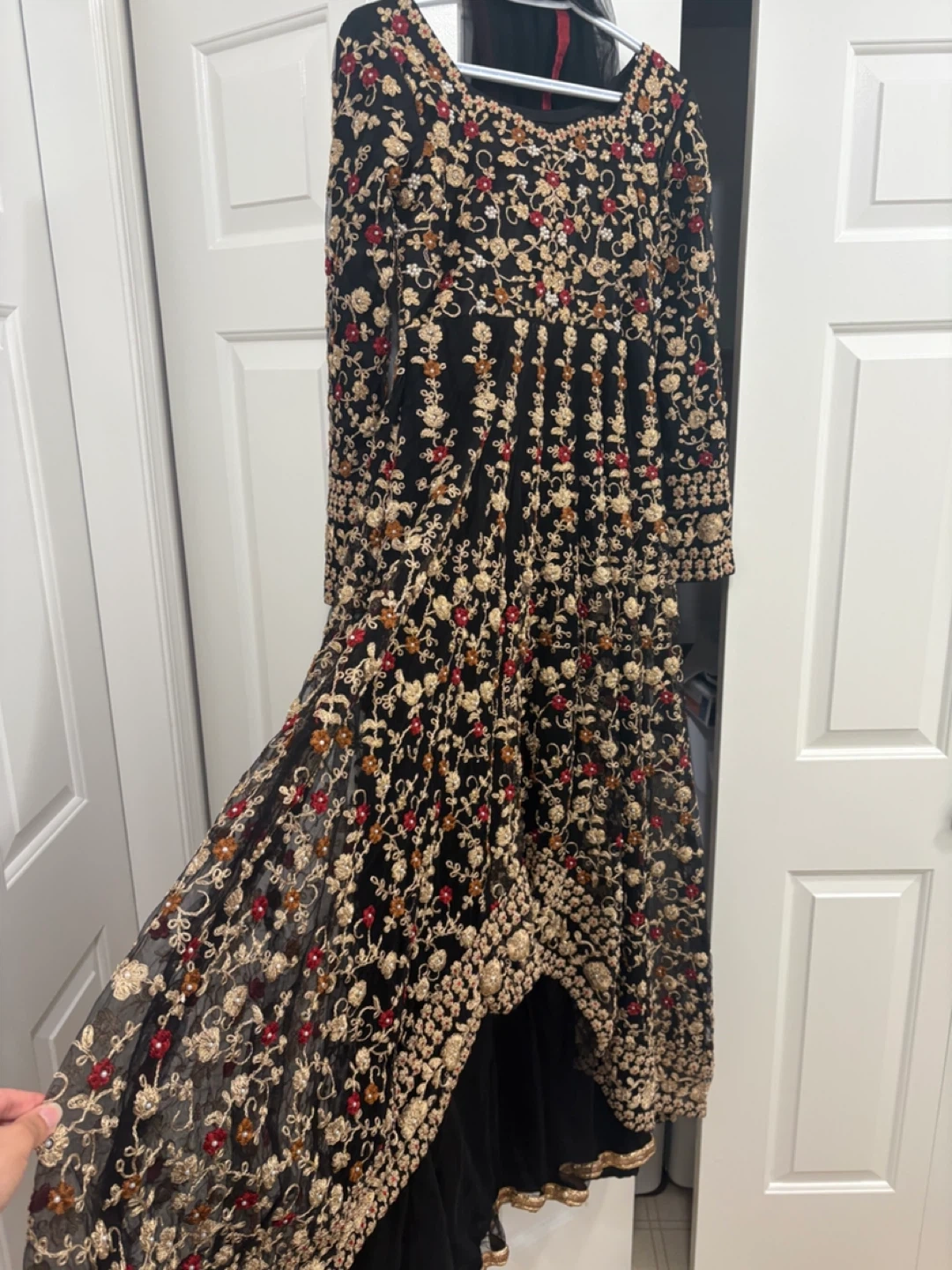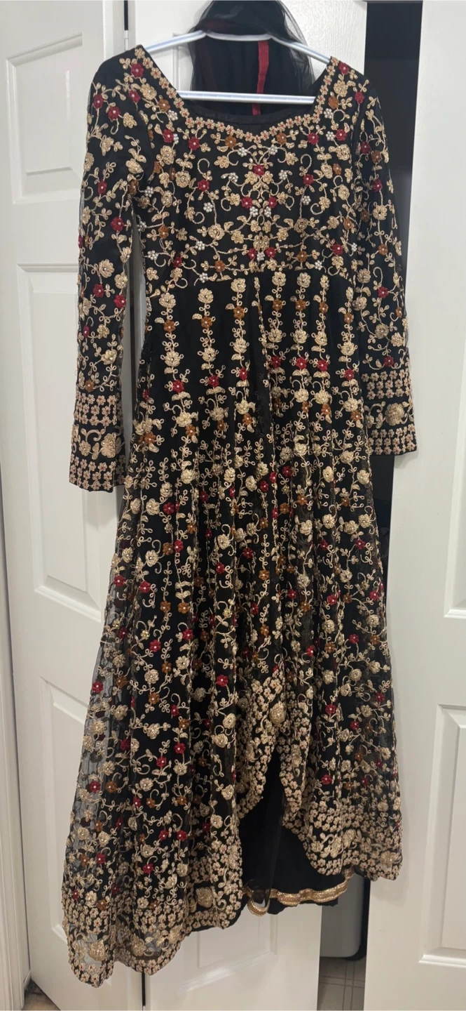 Beautiful black Anarkali dress with intricate embroidery! The dress is a size medium and is in great condition. Perfect for a special occasion or event!