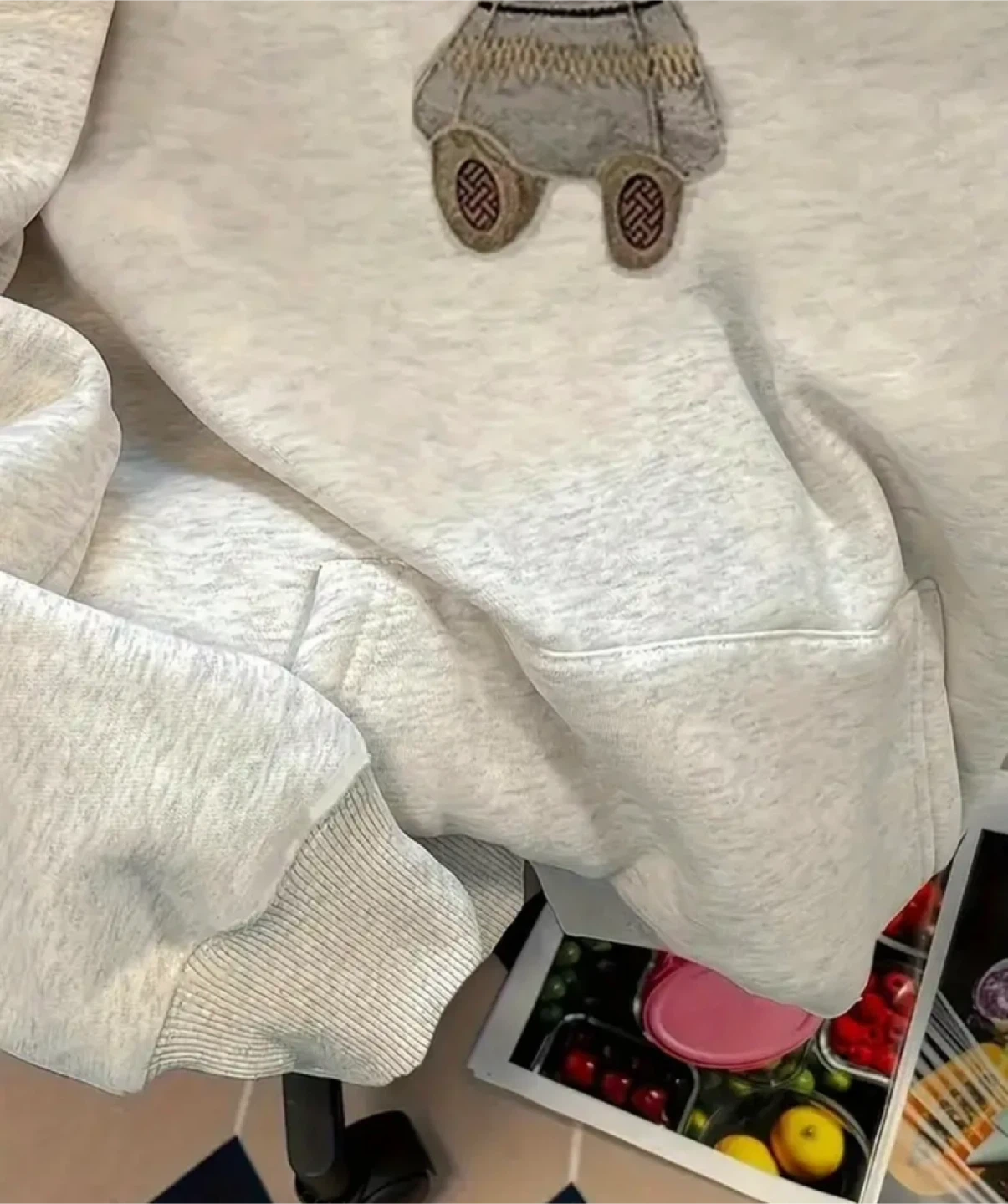 Cozy white hoodie with a cute bunny design! It's super comfy and perfect for layering or just lounging around. The material is soft and has a nice, relaxed fit. It's in great condition!