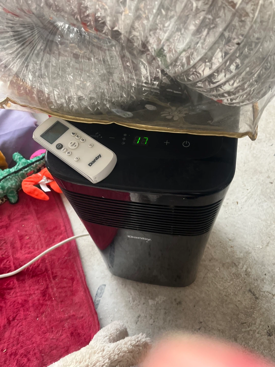 Keep cool with this Danby portable air conditioner! It's black and comes with a remote for easy control. Perfect for those hot summer days! Hose and remote included!
