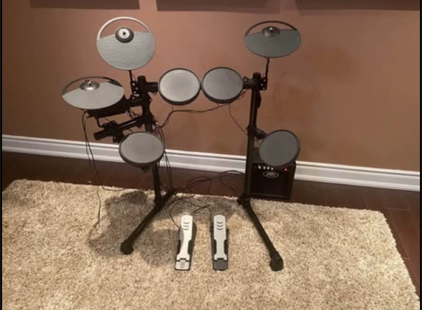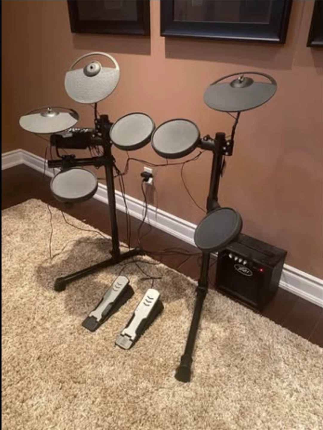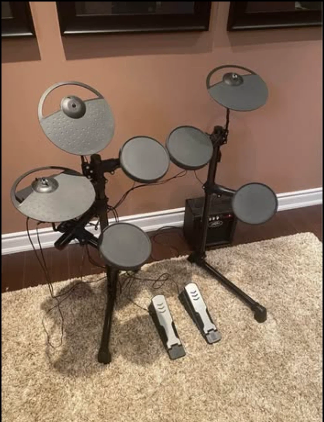 Without Amp (Drum Kit only): CAD $350 Bundle with Amp: CAD $450 Yamaha DTX400K electric drum set in great working condition, complete with rack, module, cymbals, pads, kick pedal, and power supply. Great for beginners or practice at home — quiet and compact with realistic response. Also available with a Peavey MAX-126 amplifier for full sound. Amp is clean (none smoking home), reliable, and great for practice. ✔️ Good used condition ✔️ Everything functions as it should ✔️ Perfect for practice, learning, or jamming at home PICKUP ONLY **chair not included **head set not included