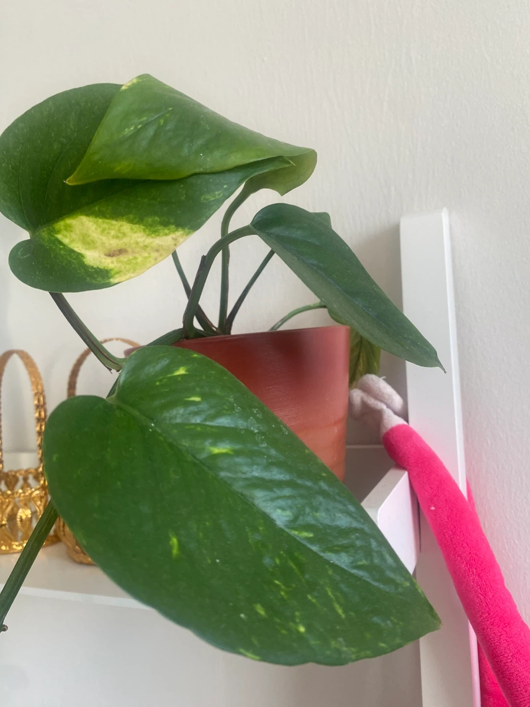 I'm selling a healthy golden pothos plant in a terracotta pot. This plant is known for its beautiful variegated leaves and air-purifying qualities. It's easy to care for and perfect for adding a touch of greenery to your home!
