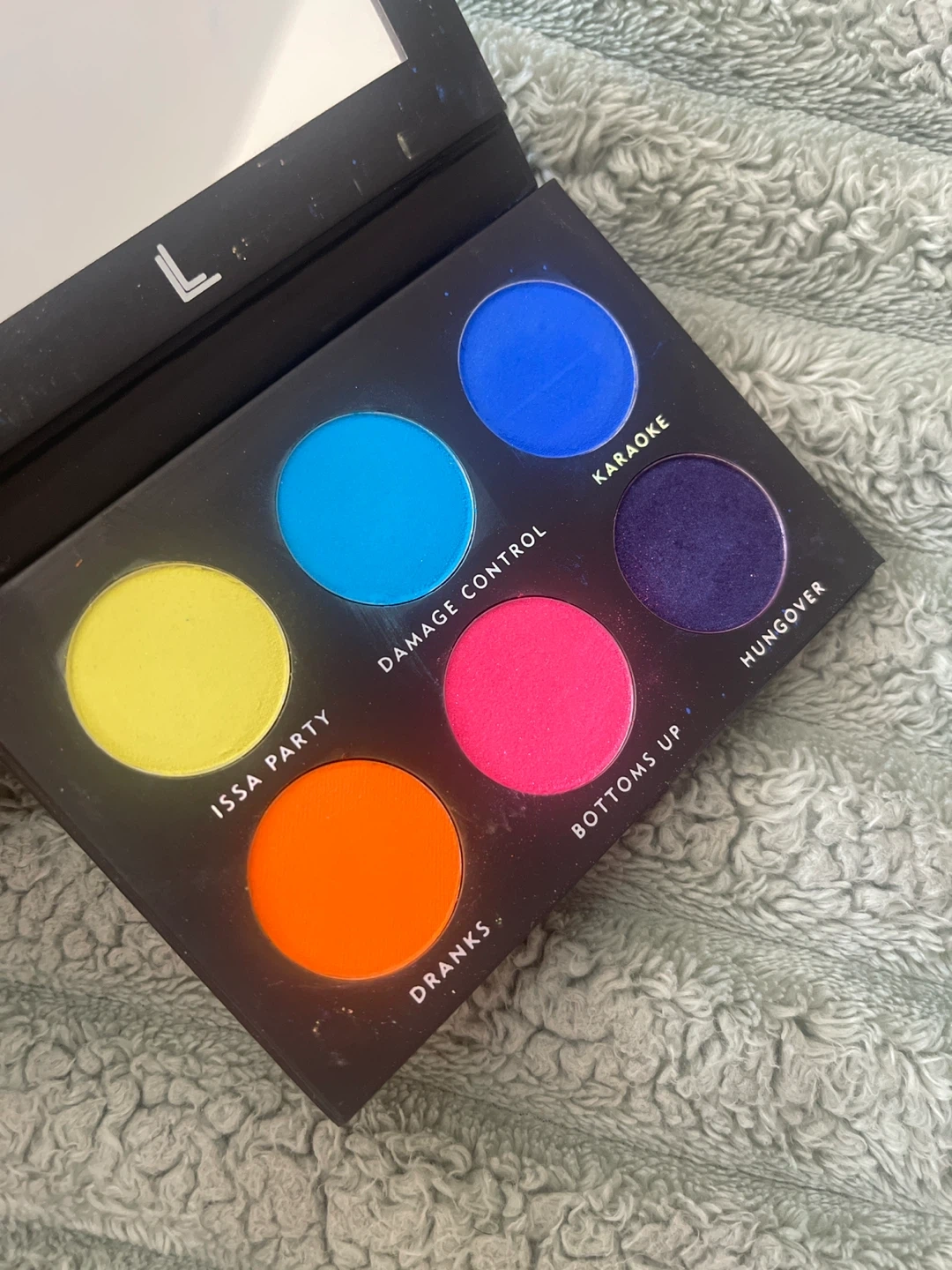 Selling a Laura Lee Los Angeles Party Animal eyeshadow palette! The palette features a range of vibrant colours, including: - Issa Party (yellow) - Damage Control (light blue) - Karaoke (dark blue) - Dranks (orange) - Bottoms Up (pink) - Hungover (purple) It's perfect for creating bold and fun looks