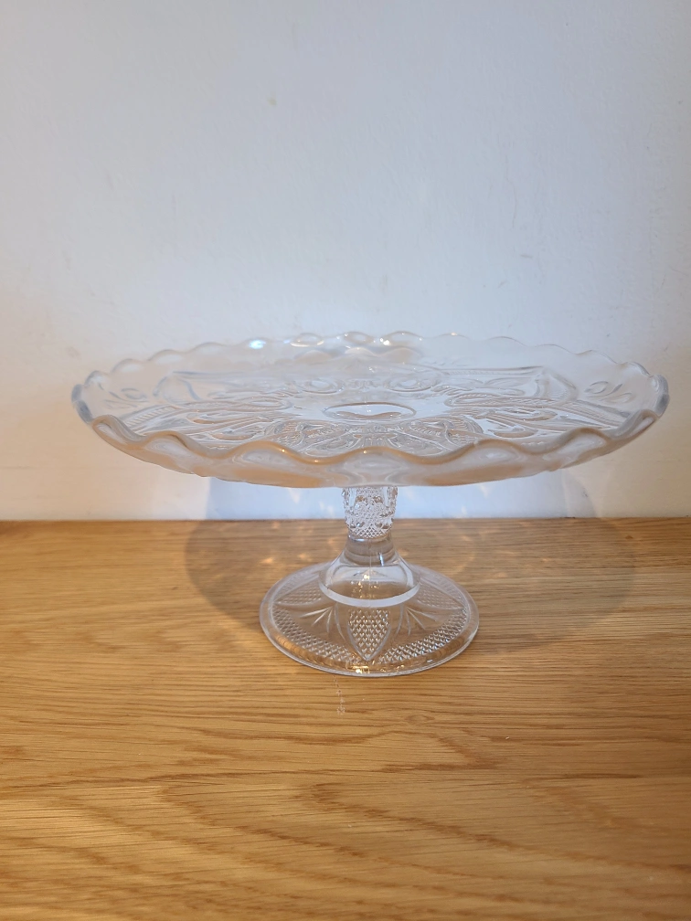 Selling a lovely glass cake stand. It's perfect for displaying your baked goods or desserts. The stand has a beautiful, intricate design that adds a touch of elegance to any table. It's in great condition and ready for a new home! Diameter is 24 cm/9.5" Height is 11.5 cm/4.5" From a pet-free, smoke-free home Porch pickup near Bathurst station