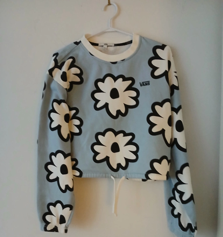 Super cute Vans crop top with a floral print! It's a light blue colour and a size large.