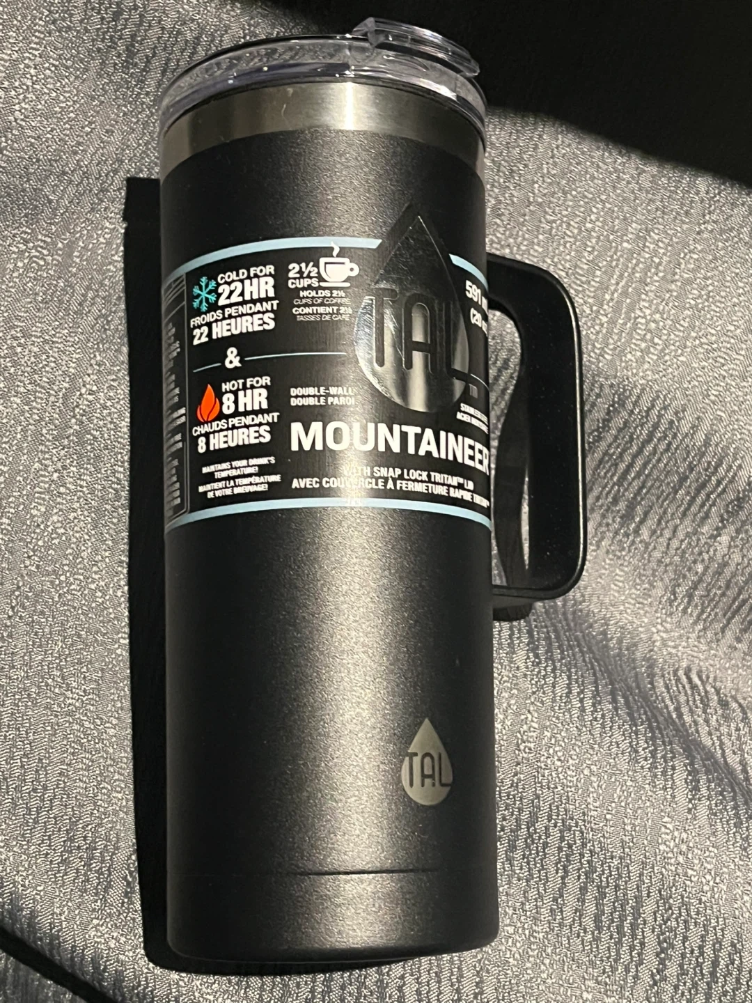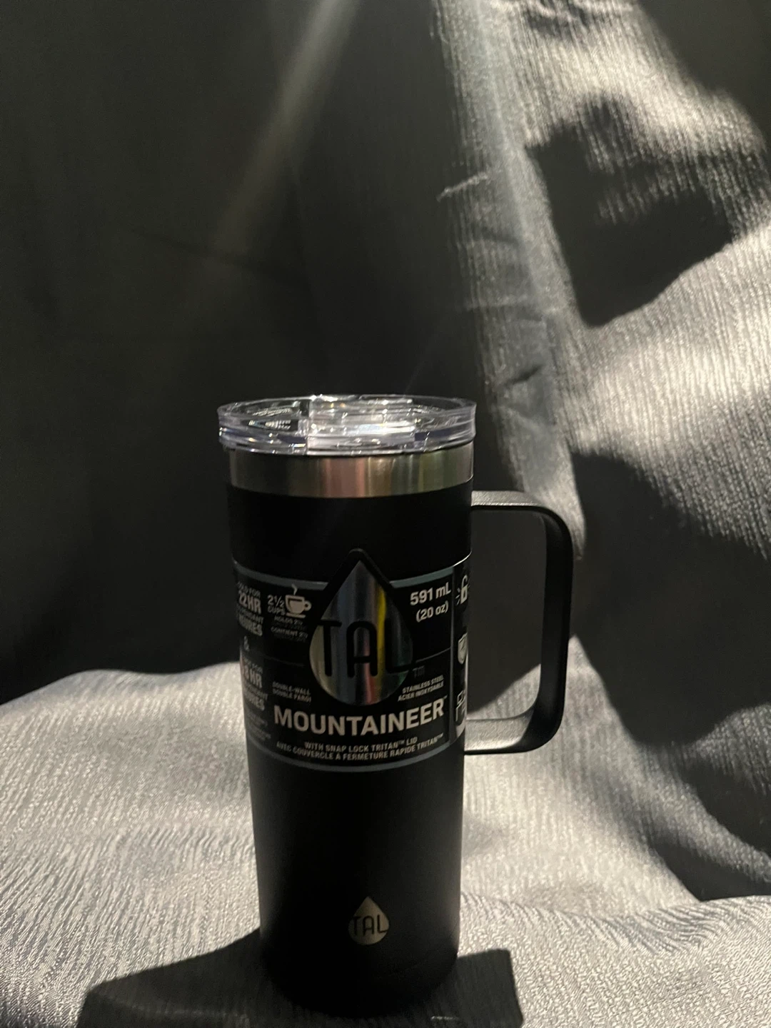 Keep your drinks cold for up to 22 hours or hot for up to 8 hours with this TAL Mountaineer mug! It's a 20oz stainless steel mug with a double-wall design. Perfect for your daily coffee or water