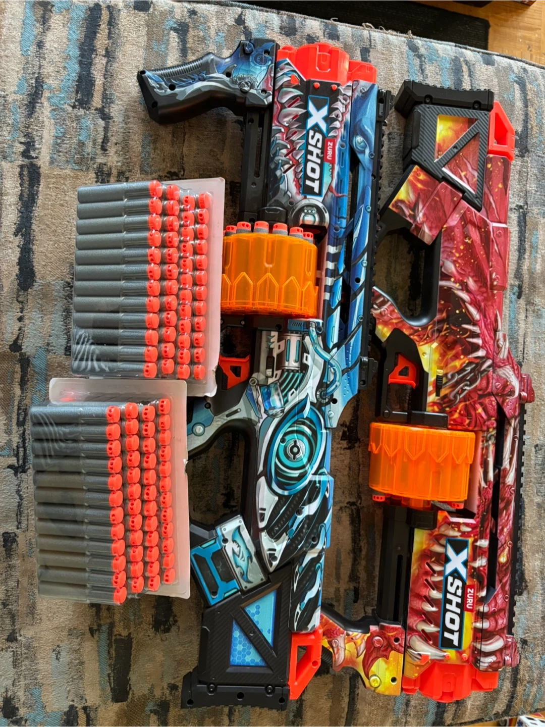Selling two X-Shot toy dart guns. They come with a bunch of darts so you can have plenty of fun! Great for kids and adults alike