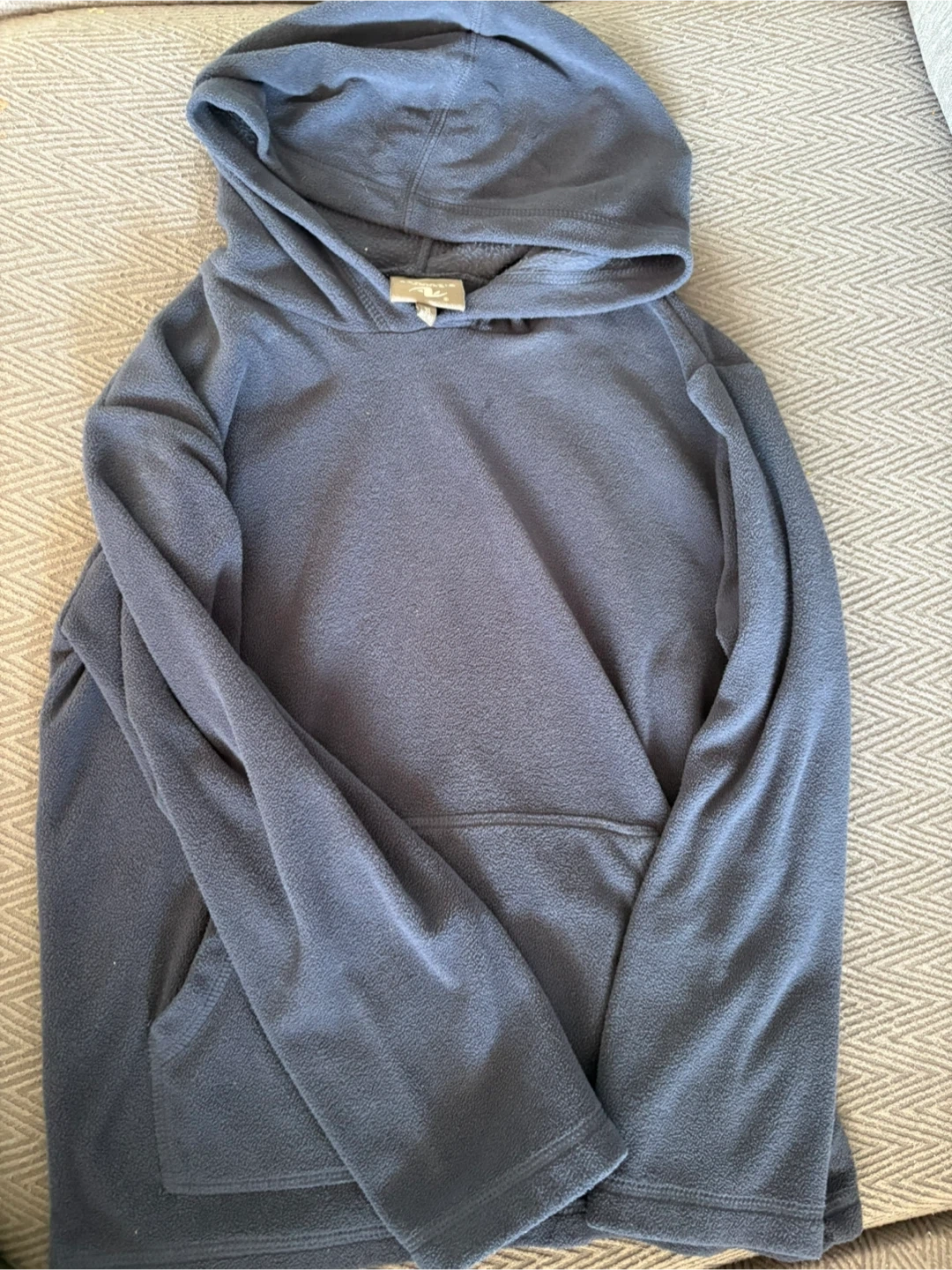 Cozy Athletic Works fleece hoodie in great condition! It's a size M (7-8) and perfect for keeping warm on chilly days. The hoodie features a soft fleece material and a comfortable fit. It also has a handy front pocket for keeping your hands warm or storing small items