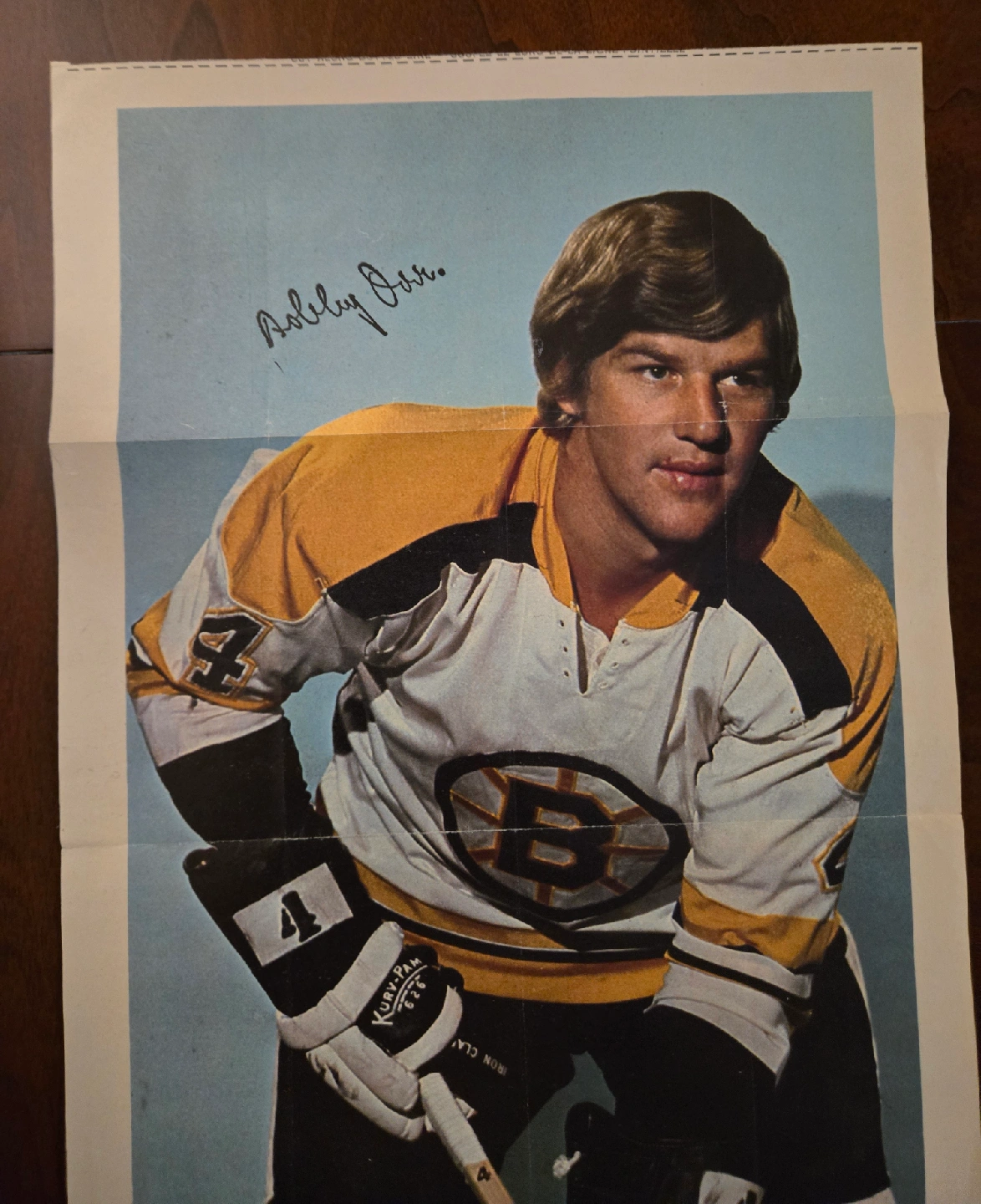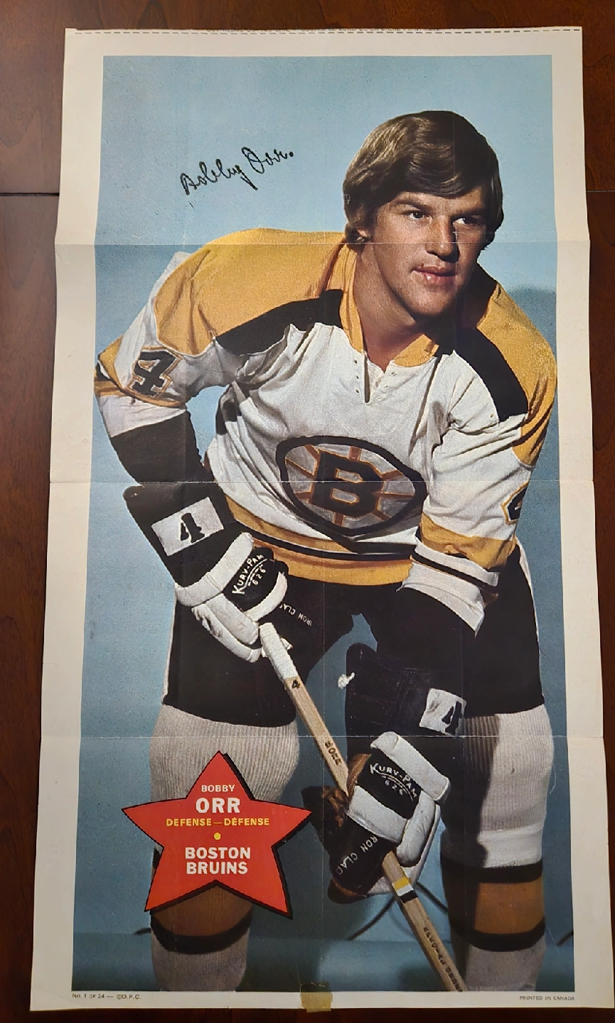 Selling a Very Rare vintage Bobby Orr Original poster in Great Condition. Dimensions 18"×10". The poster is #1 of a 24 Player Set issued by OPC in 1971. The posters were a trial run, they were folded and inserted into wax packs with a stick of gum. The posters lasted only one season as the residue from the gum left stains on the majority of the posters. Fortunately the one i pulled from the pack when Iwas kid was Mint, other than the fold lines from packaging. The poster is very clean, no pin holes or tears. Great Color. There is one small tape mark, bottom center. It's a Really cool piece of hockey memorabilia for any fan.