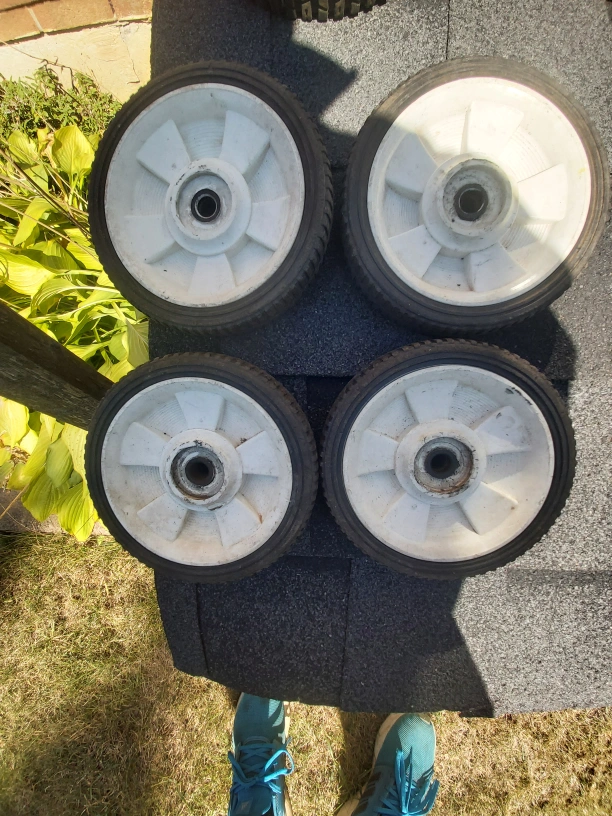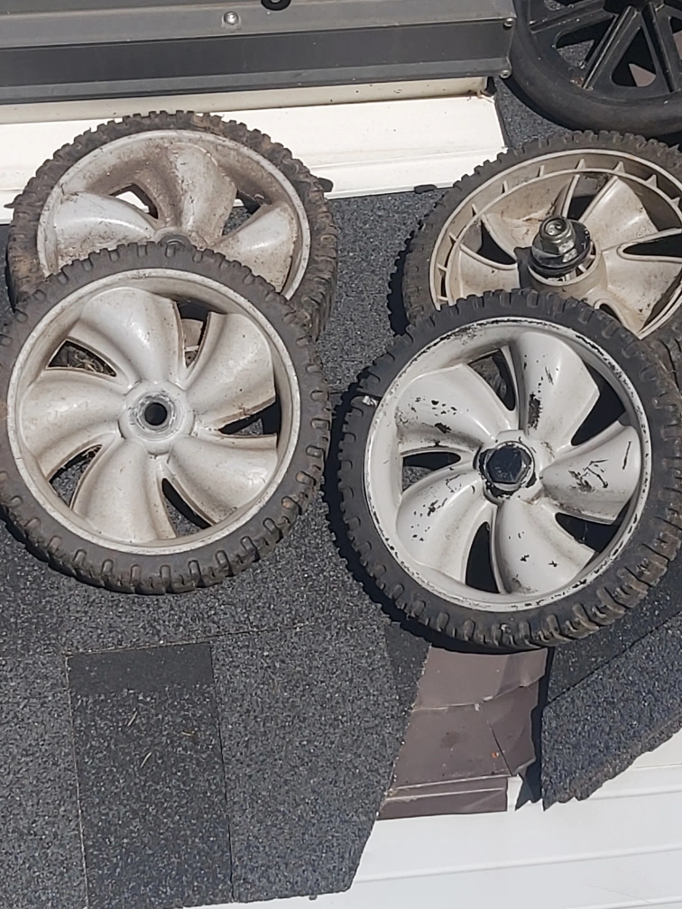 I have a variety of used wheels available. They come in assorted sizes and types. Perfect for various projects or replacements for lawnmower, barbecue wheels, grocery carts, etc.