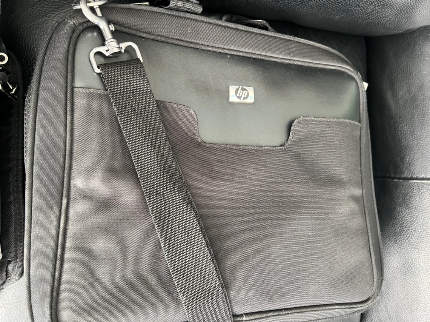 HP laptop bag in good condition! It's black and has a shoulder strap.