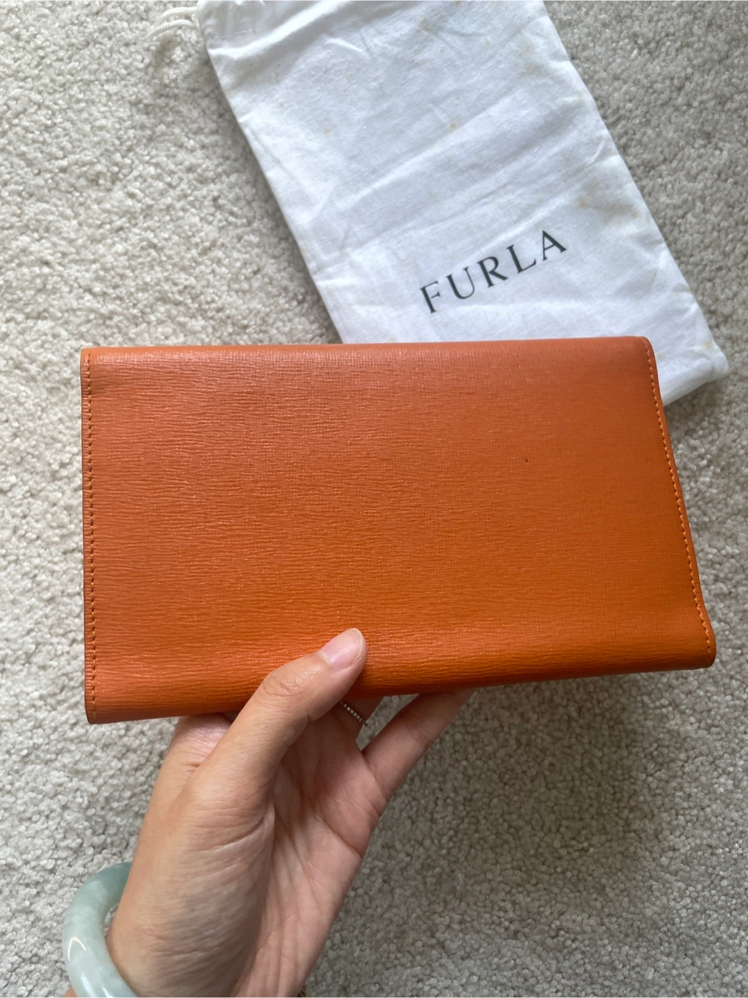 Selling a Furla wallet in great condition! It's a stylish orange leather with a pink interior. Comes with the original Furla dust bag.