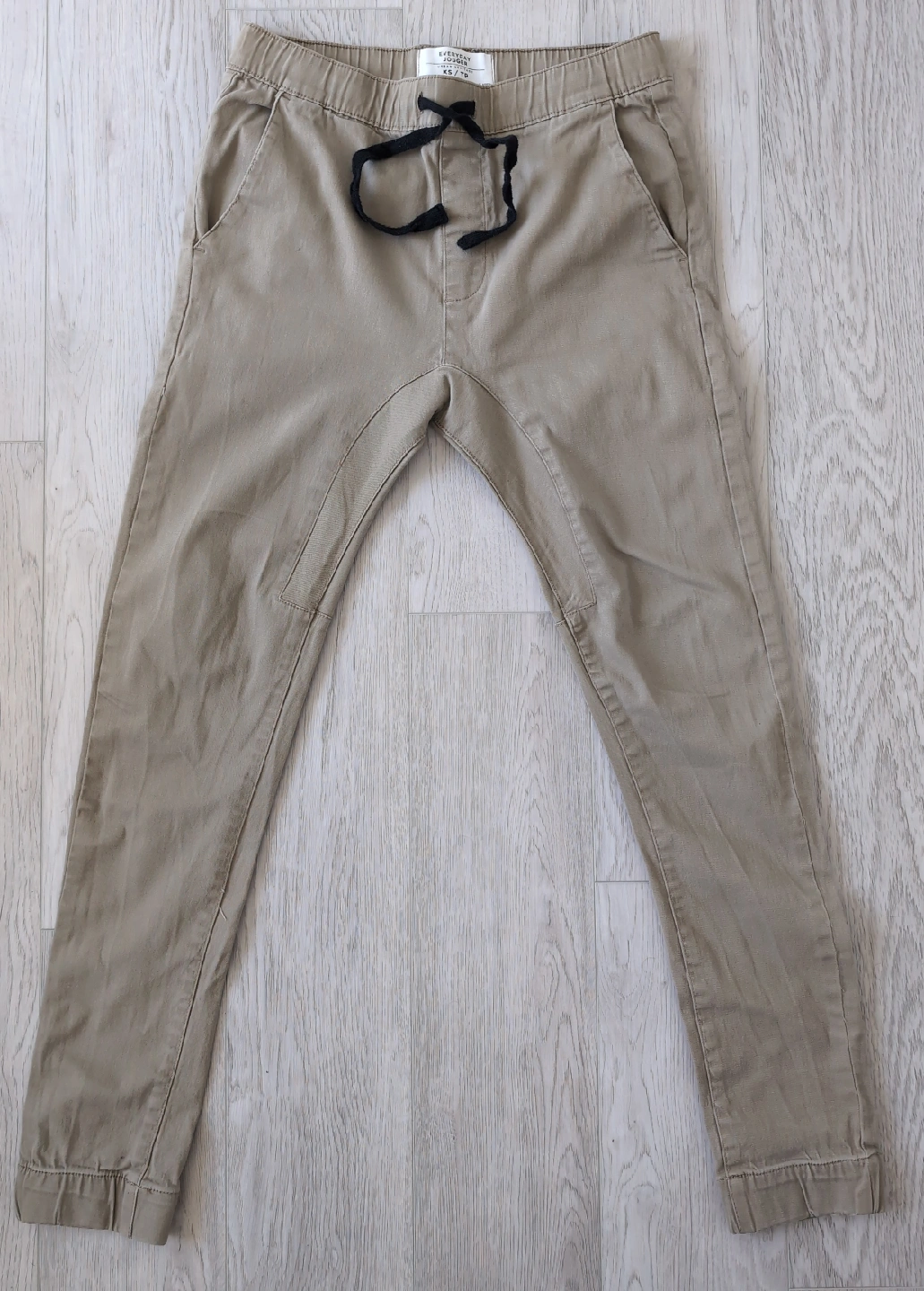 Selling a pair of Everyday Casuals khaki joggers in size XS/TP. They are in great condition and feature a comfortable elastic waistband with a drawstring. Perfect for everyday wear!