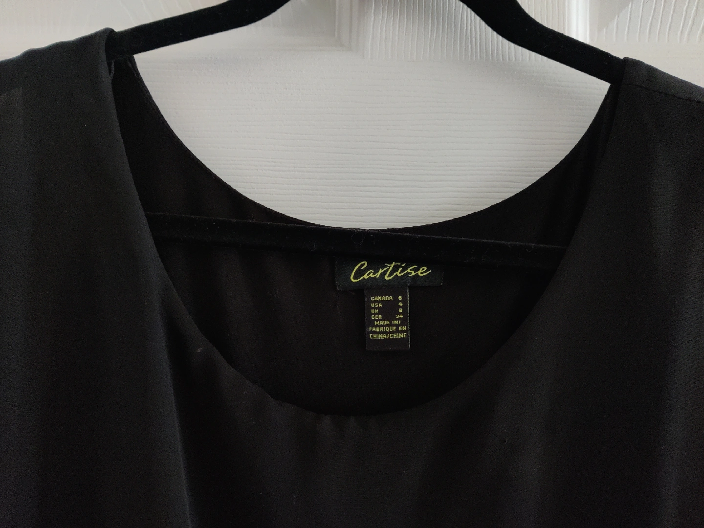 Selling a lovely black Cartise dress in size 6. It's in great condition and perfect for a night out or special occasion! The dress features a unique layered design and a comfortable fit From a no pet non smoking home Meetup near Finch and Yonge Cash only Please check other listings on my profile :)