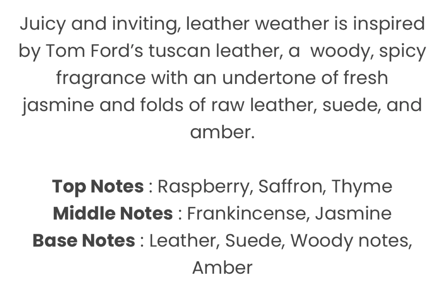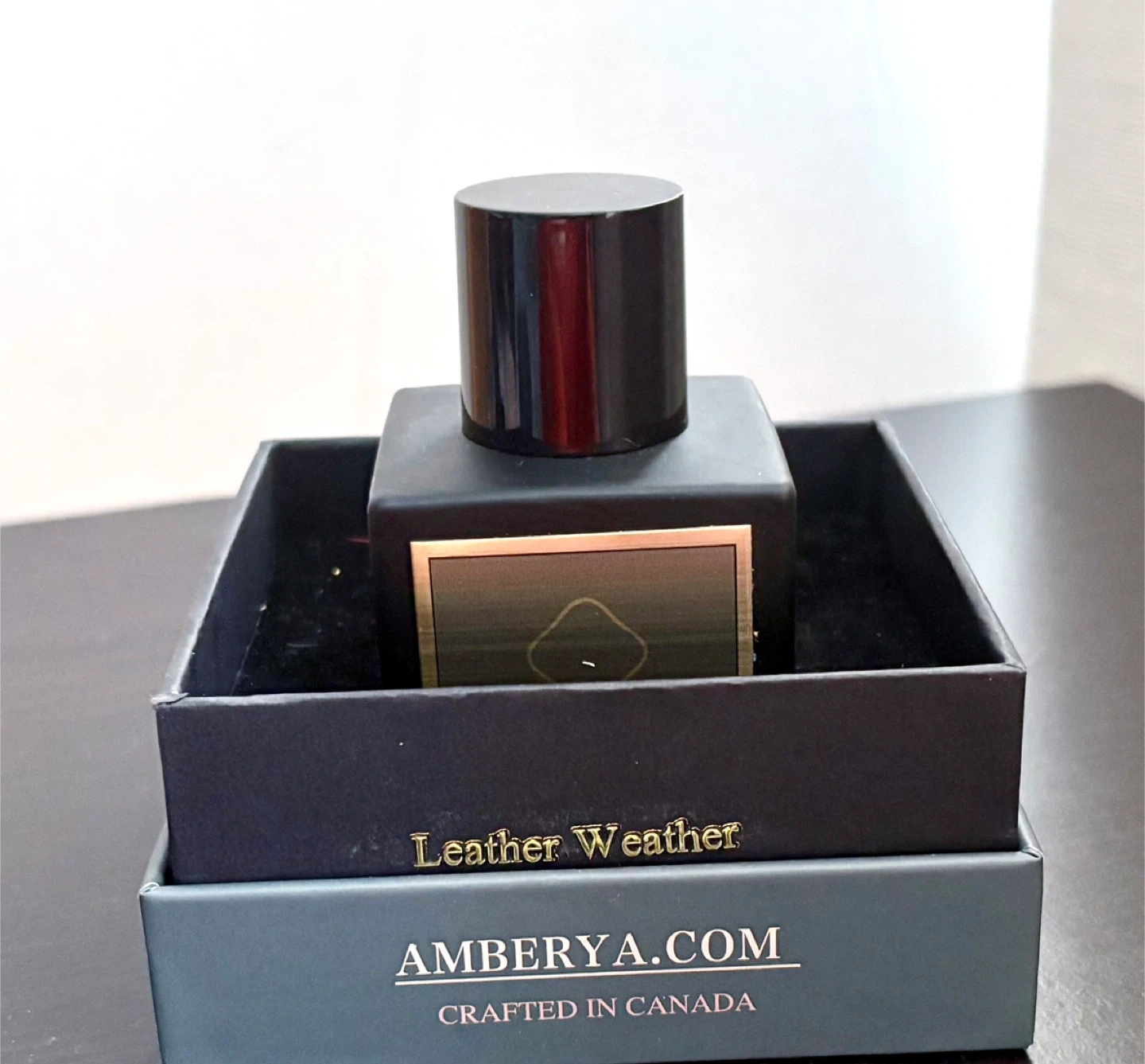 Selling a bottle of Amberya's Leather Weather! It's crafted in Canada and comes with its original box. Just missing couple of sprays Was a gift but not for me 50% off retail price It's a woody, spicy fragrance with notes of: - Raspberry - Saffron - Thyme - Frankincense - Jasmine - Leather - Suede - Woody notes - Amber