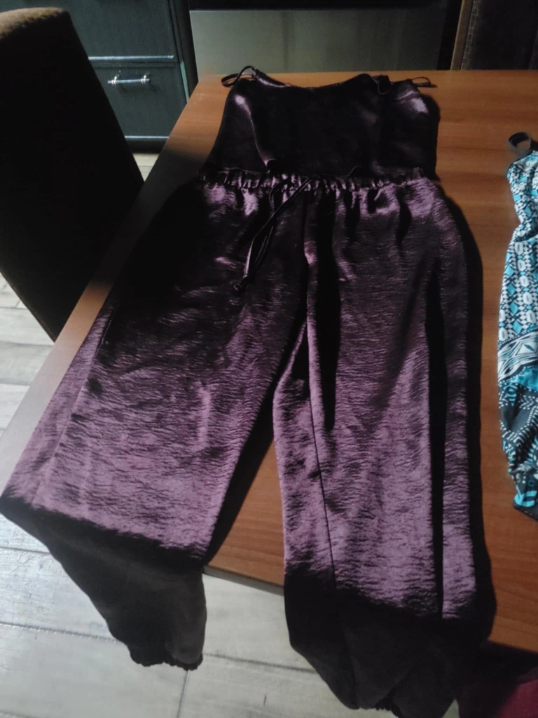 Selling a satin jumpsuit in a lovely plum colour. It features a drawstring waist for a comfortable fit. Perfect for a night out or a special occasion!
