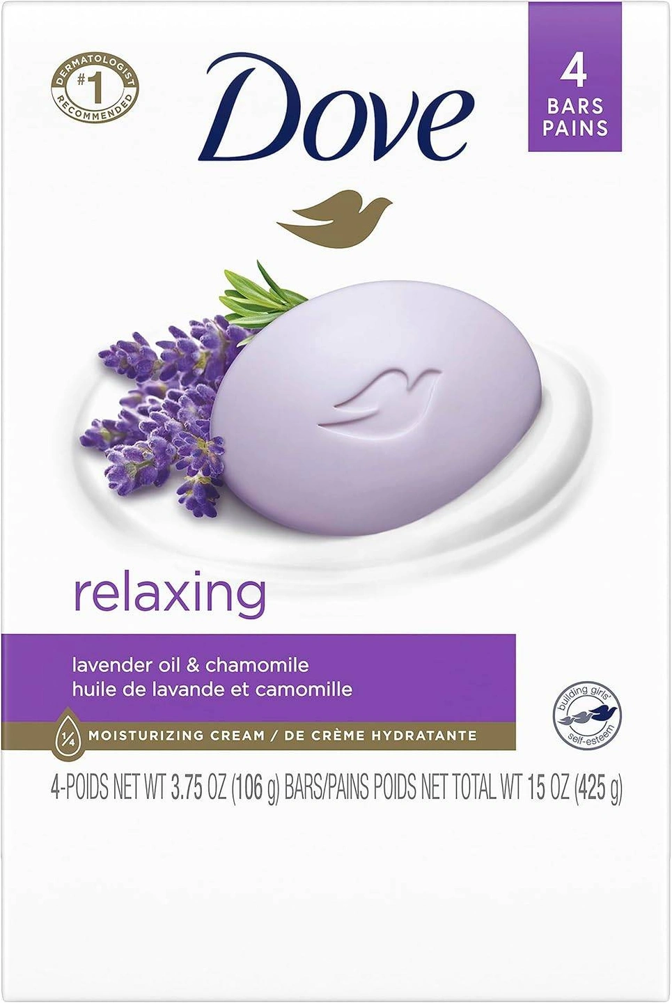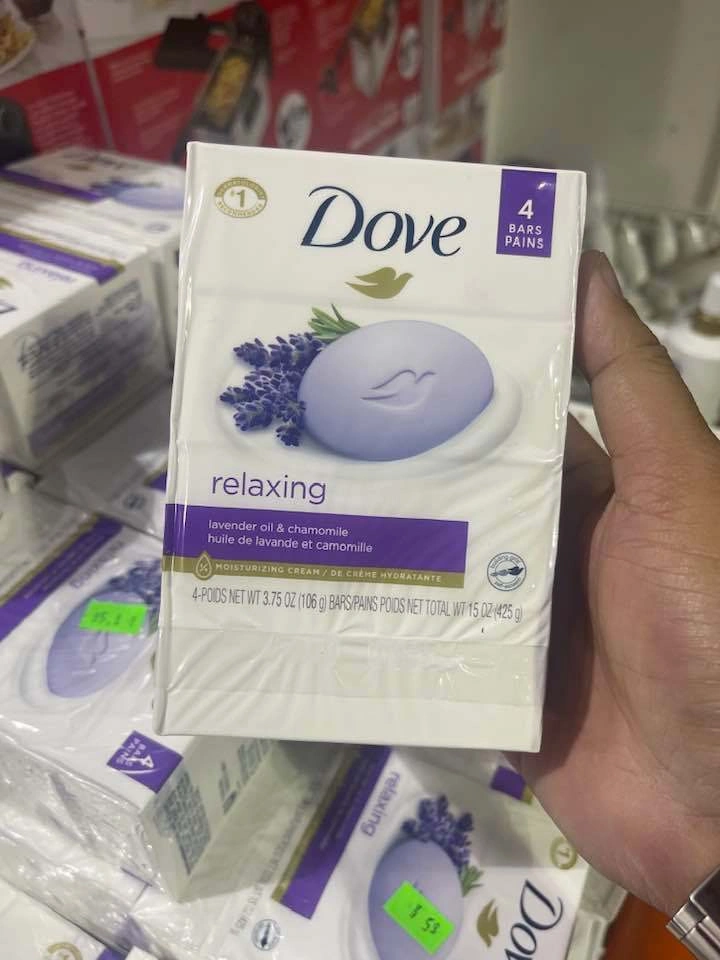 Brand New Sealed Dove Beauty Bar Soap with 1/4 Moisturizing Cream, Gentle Skin Cleanser, Relaxing Lavender Oil & Chamomile, 106 g, Pack of 4 ✨ New Stock Alert! ✨ Dove Beauty Bar Soap – Relaxing Lavender Oil & Chamomile With 1/4 moisturizing cream for soft, nourished skin. Gentle Skin Cleanser Soothing Lavender & Chamomile 106 g – Pack of 4 ONLY $5 each pack!!