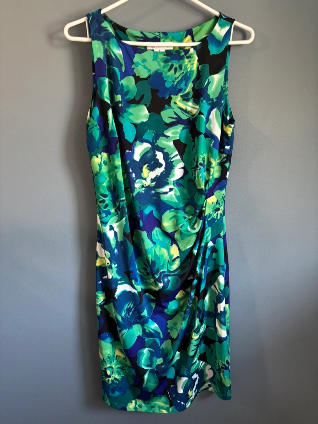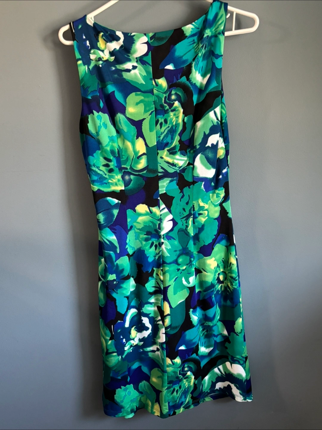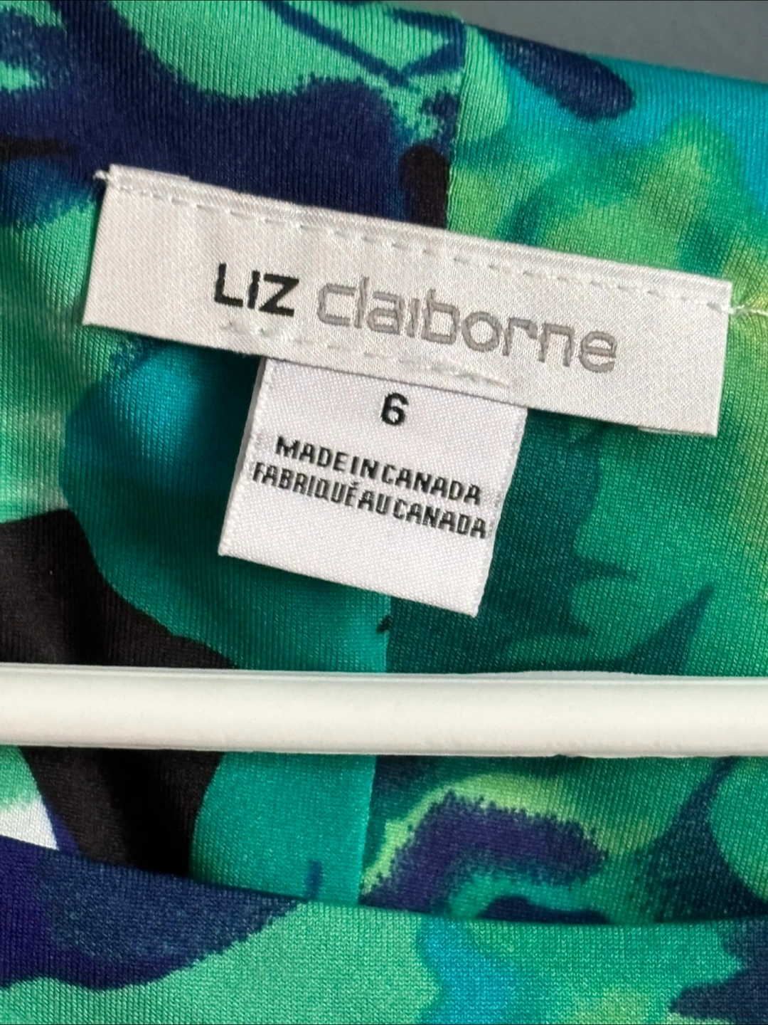 Selling a Liz Claiborne dress in a beautiful floral pattern with shades of green and blue. It's a size 6 and made in Canada! Perfect for a summer day or a special occasion