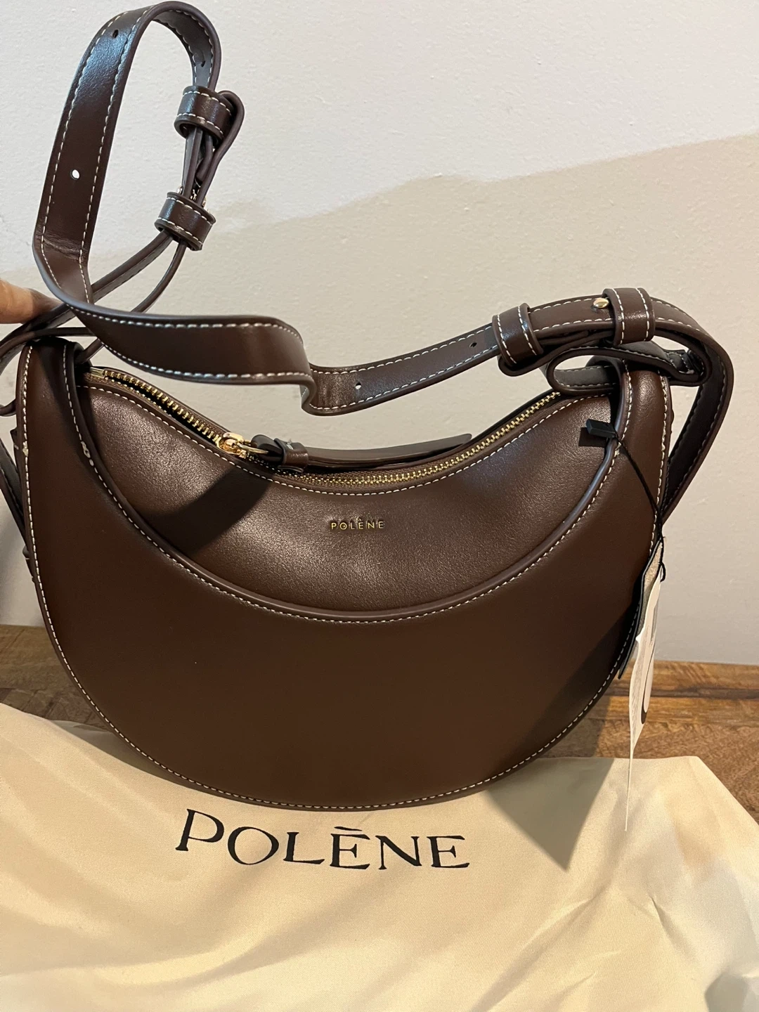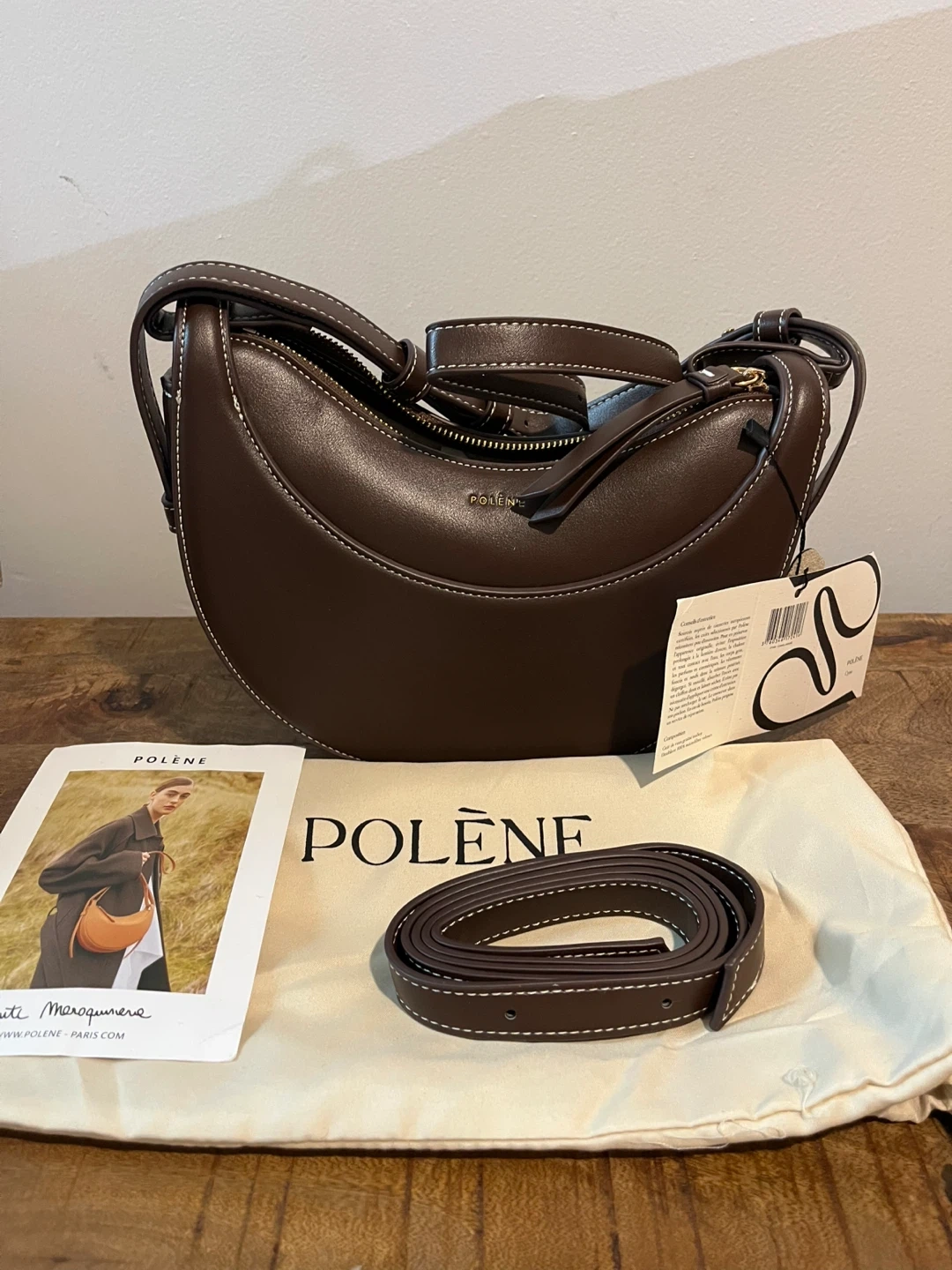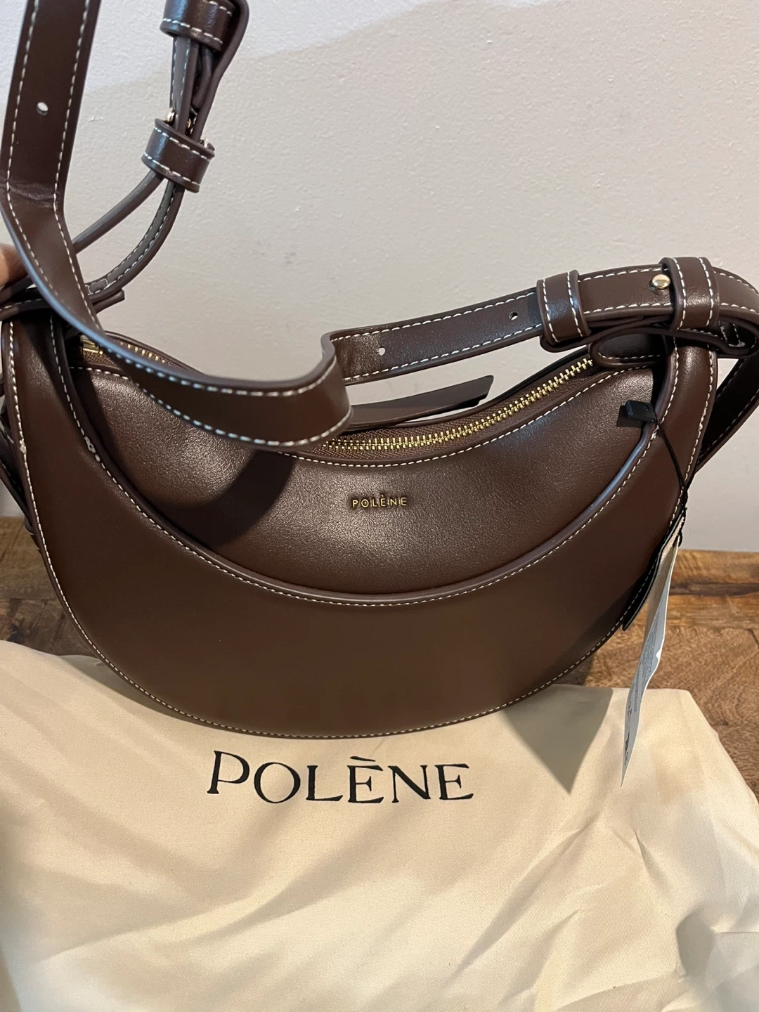 Selling a beautiful Polène Numero Sept Mini bag in a lovely brown geniune leather. It's brand new condition and comes with its dust bag. This stylish bag is perfect for everyday use or a night out. The unique design and quality craftsmanship make it a standout piece! Available color light brown ang dark brown