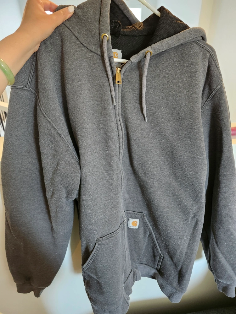 Selling a Carhartt full zip hoodie in grey! It's a size XL Tall. shows some wear , as seen in photos This hoodie is perfect for layering or wearing on its own during cooler days. It features a full zip closure and the classic Carhartt logo on the pocket. Great for anyone needing a durable and comfortable hoodie!