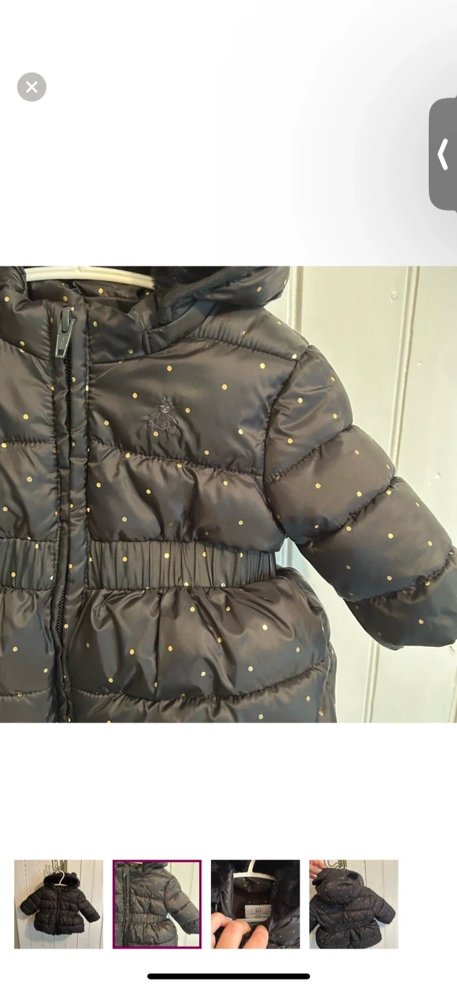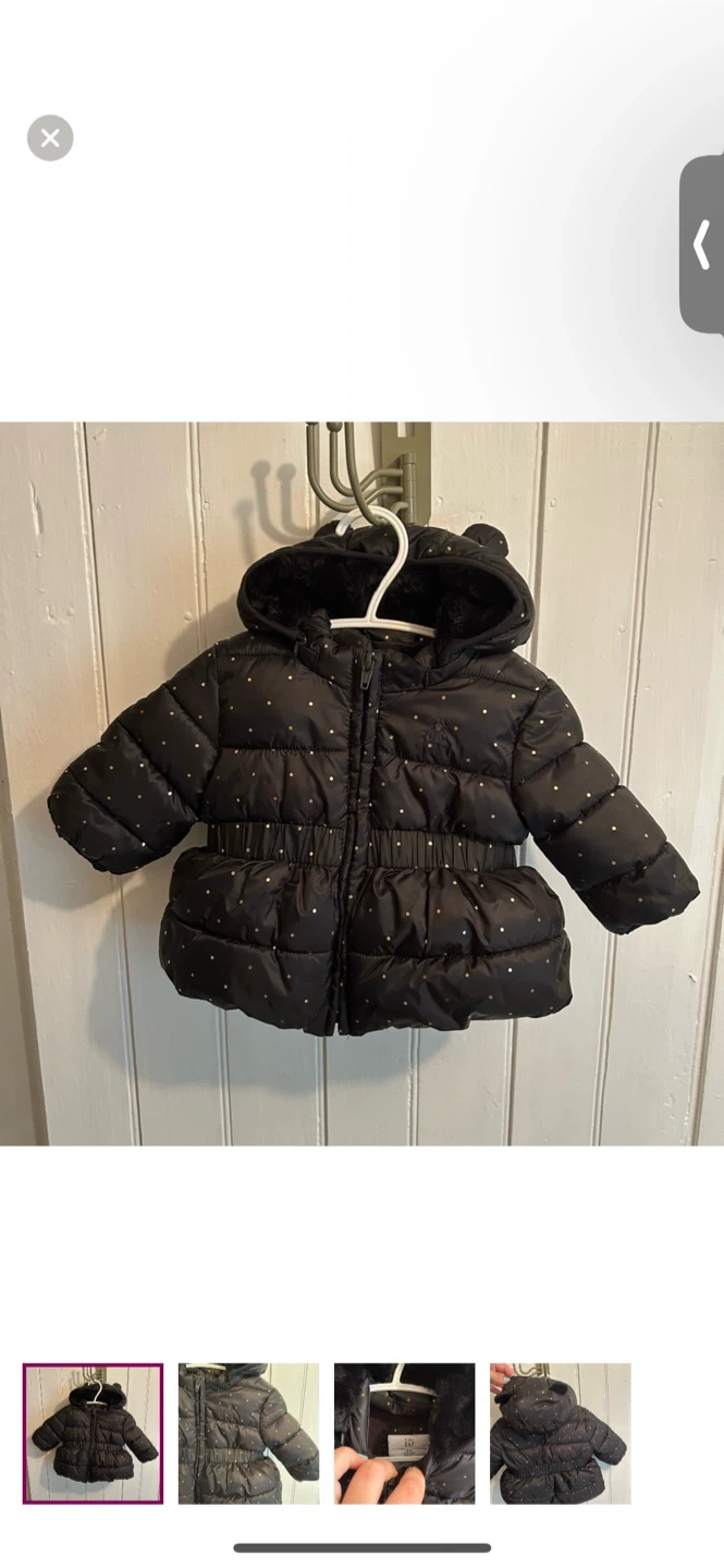 Gap brand. Zip up puffer winter jacket. Zip up. Fleece lined hood with bear ears. Black with gold polka dots. Size 0/6m. Brand new condition $20 Pickup between kincardine & ripley or I can arrange delivery in port Elgin-Owen sound, walkerton-Durham, wingham-listowel-kw/cambridge, goderich-bayfield, Woodstock & Arthur-Orangeville-Newmarket-Lindsay-Peterborough AREAS.