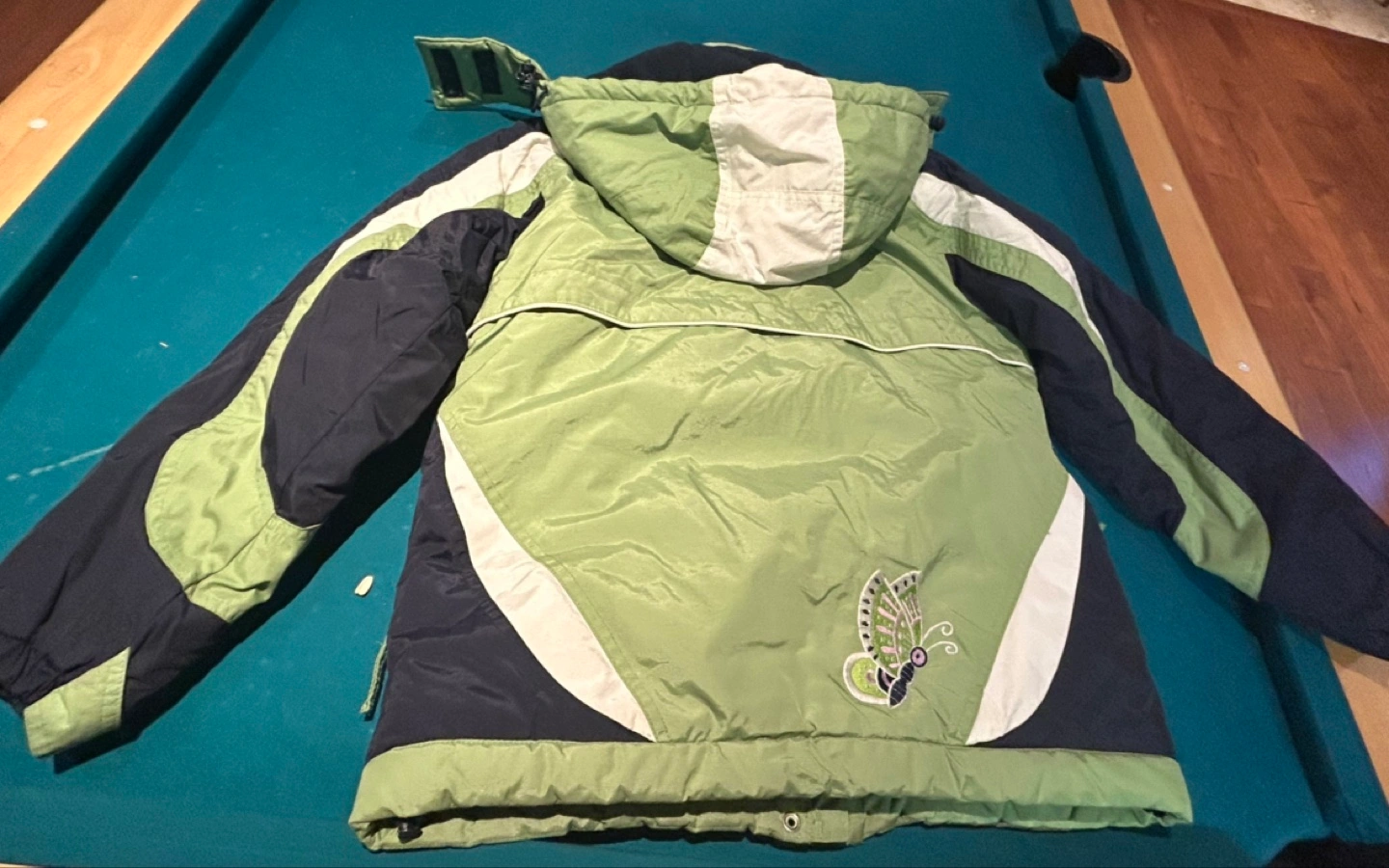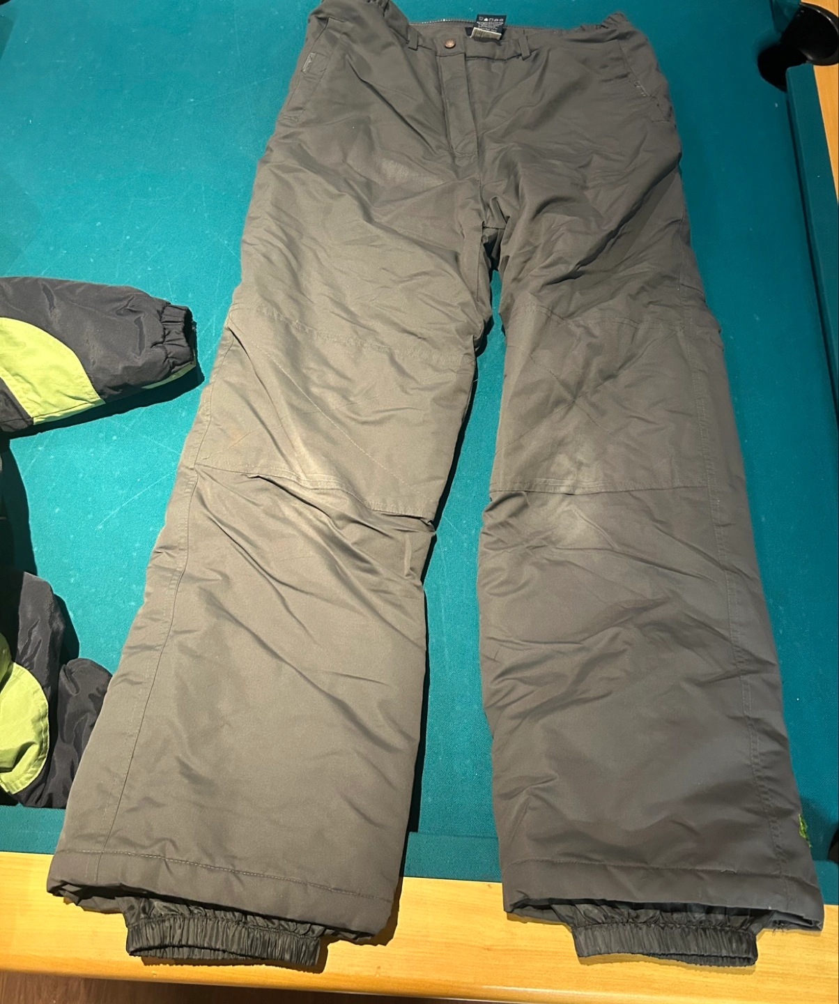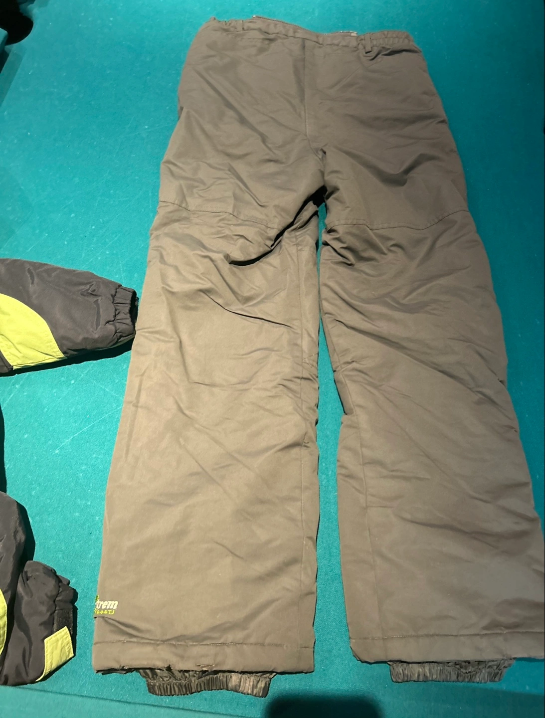 Selling an X-Trem Gusti snowsuit in size L (14-16). The set includes a jacket and pants. The jacket is green, white, and black, and the pants are a neutral grey colour. Great for keeping warm during winter activities! In excellent condition