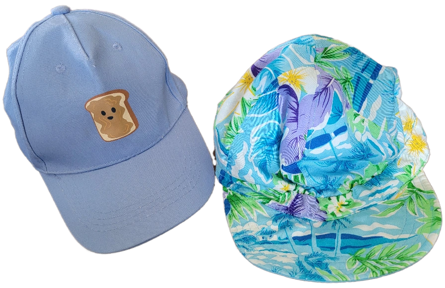 Two cute hats for sale! One is a Dakota brand hat with a fun floral print and inverts to a light blue color, perfect for sunny days. The other is a light blue Gertex hat with a peanut butter sweet toast design. Peanut butter toast hat is size 4-6x and Dakota hat is adult size. Open to negotiating the price; please reach out. Thank you for taking a look at my listing! Have a wonderful day.