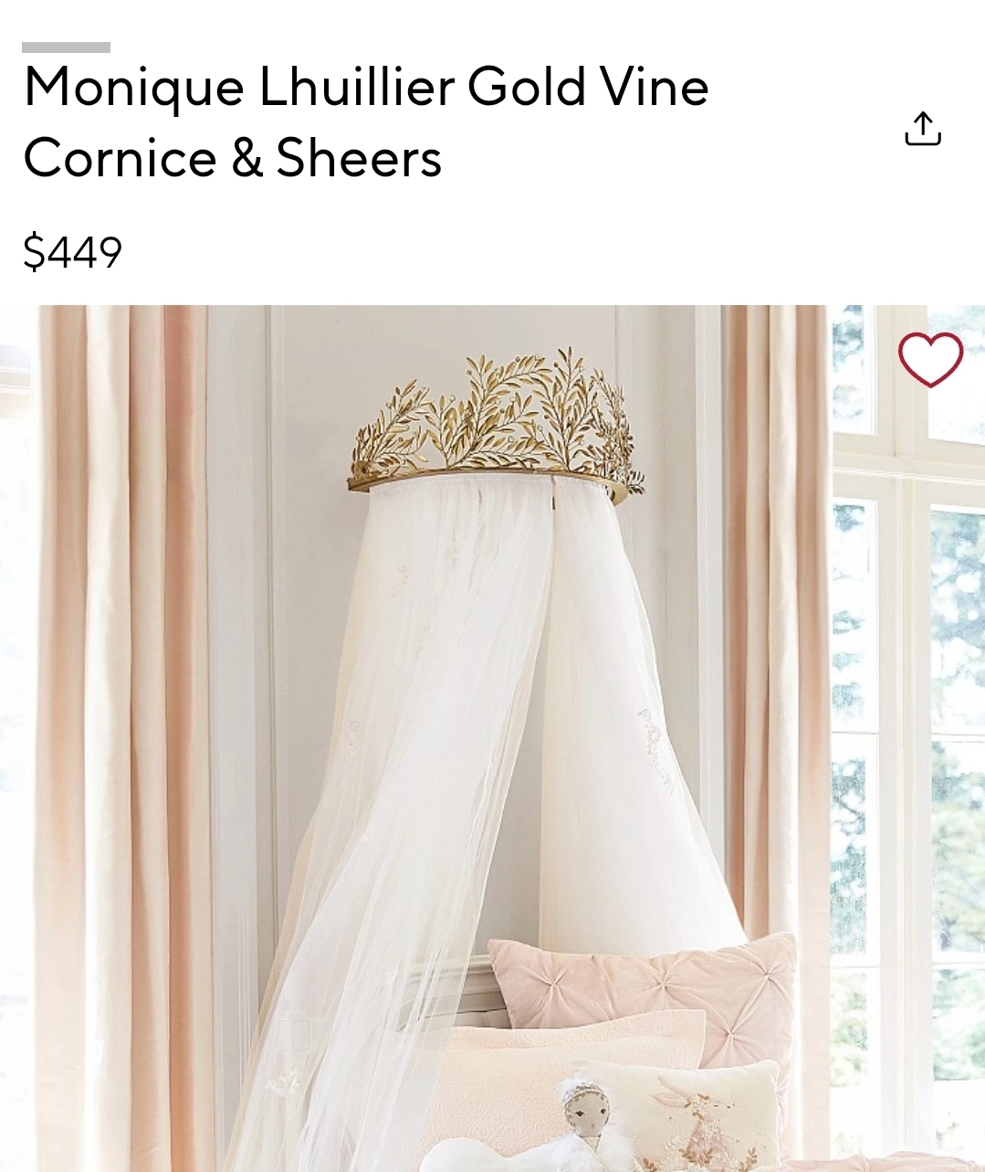 Add a touch of elegance to your space with this Monique Lhuillier Gold Vine Cornice & Sheers! It's a beautiful piece that can instantly elevate the look of any room. Originally bought for $449 at pottery barn kids