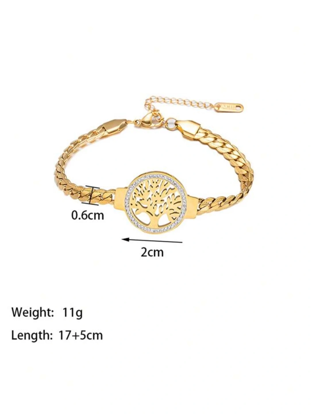 Selling a lovely gold plated bracelet featuring a tree design surrounded by sparkling stones. It has a chain link design and an adjustable clasp for a comfortable fit. It comes with a pouch! ✨