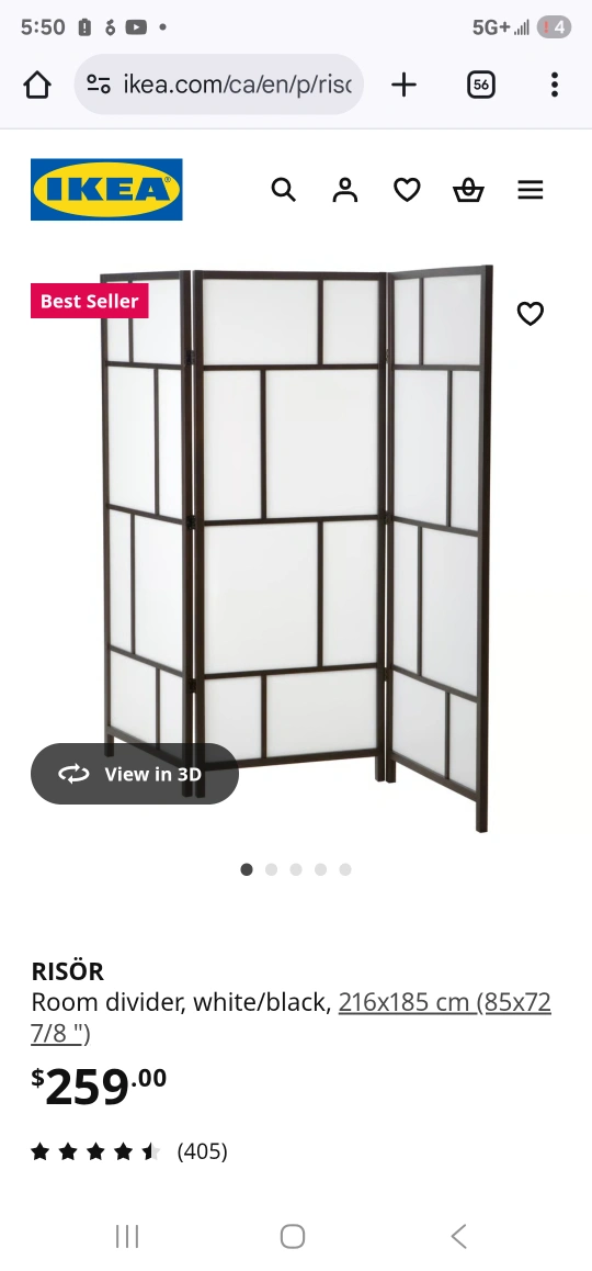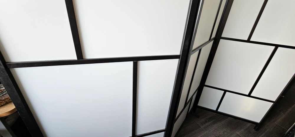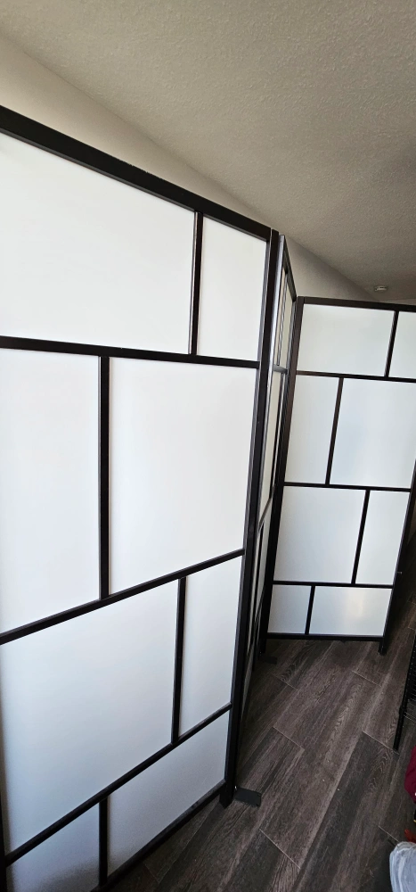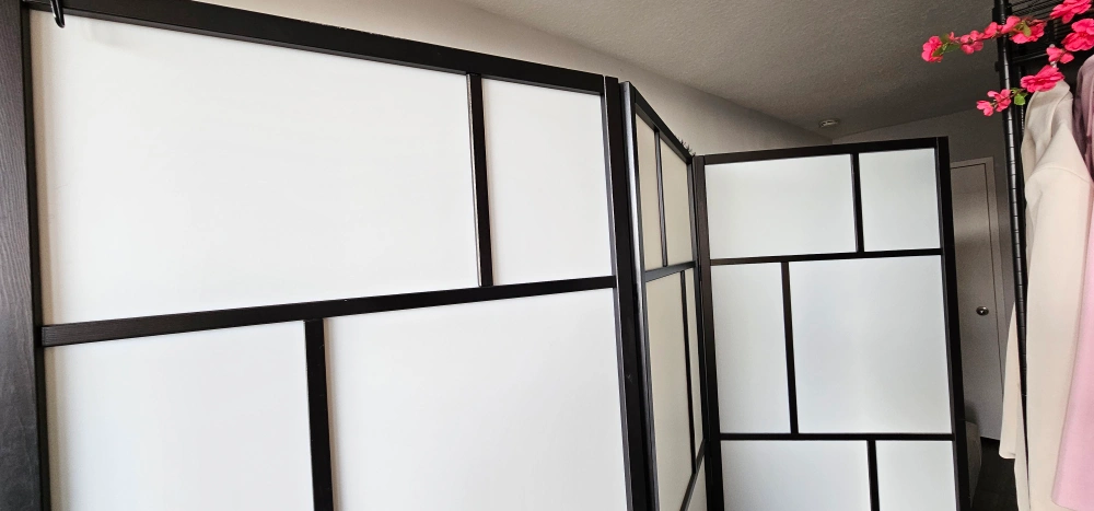 Selling an IKEA RISÖR room divider in white and black! It's in great shape and measures 216x185 cm (85 72 7/8 "). Originally bought for $259. Great for adding privacy or dividing up a space. No defects Perfect Condition bought early this year and have to sell because I'm moving