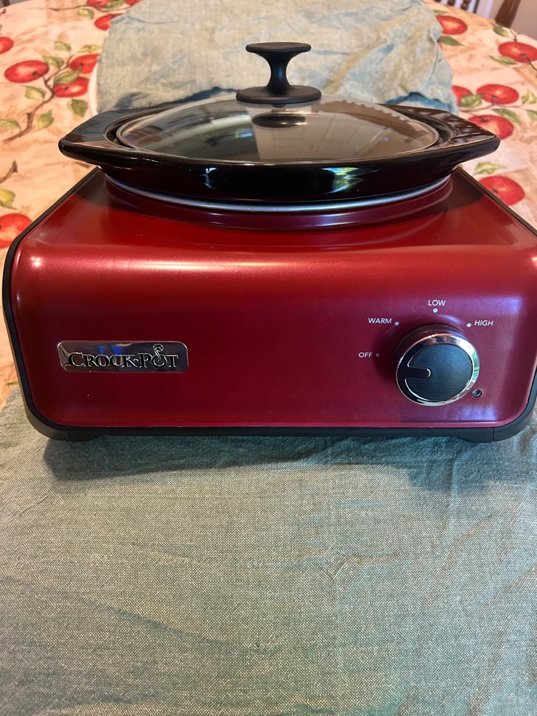 Selling a 2 quart Crock-Pot slow cooker! It's in new condition and comes with a glass lid. It has settings for warm, low, and high. Perfect for making soups, stews, or pot roasts on a chilly day!