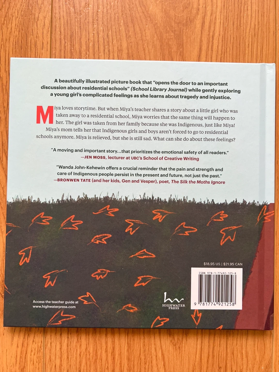 Selling a copy of "Miya Wears Orange" by Wanda John-Kehewin and Erika Rodriguez Medina. It's a beautifully illustrated picture book that teaches kids about Indigenous residential schools. Pickup in Richmond.