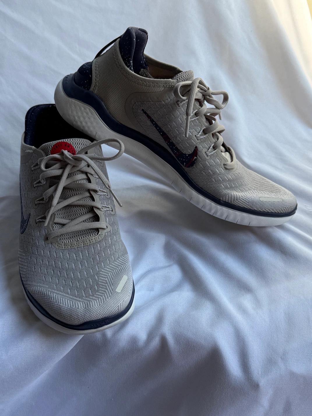 Selling a pair of Mens Nike Free RN 2018 'Moon Landing' running shoes in a men's size 9.5 US. These have a cool astronaut design on the insole! They're in good used condition and ready for a new home