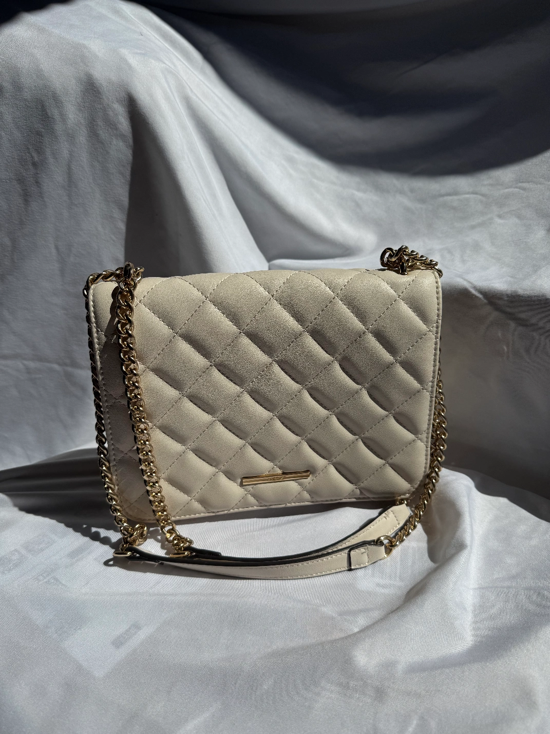 Selling a beautiful aldo bag. It's a beautiful ivory quilted leather bag with a chain strap. Perfect for everyday use or a night out like new condition
