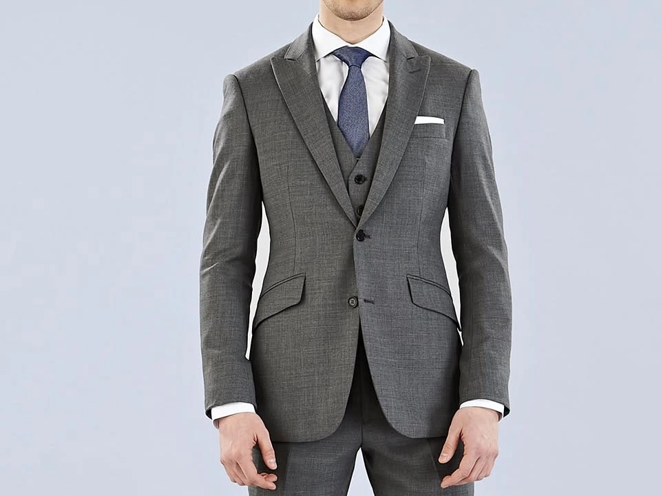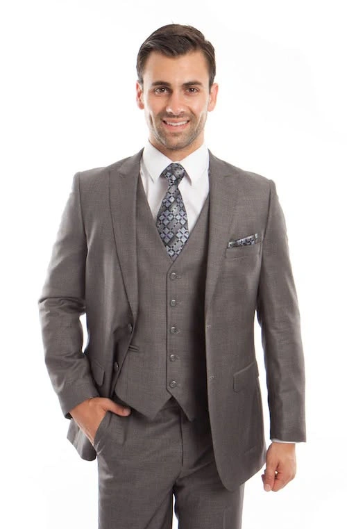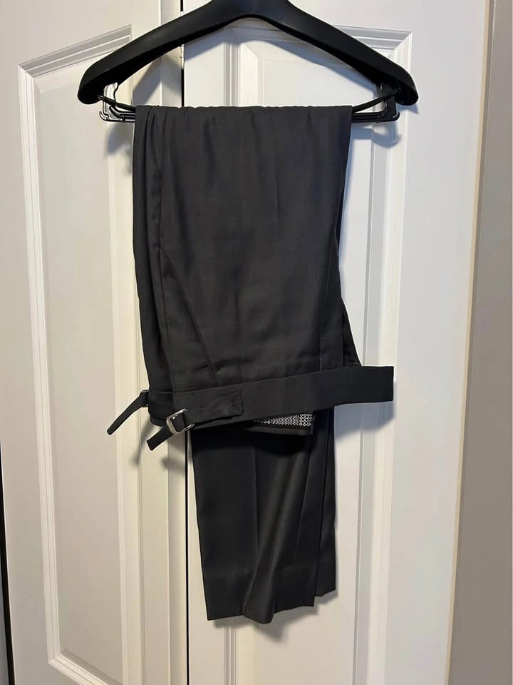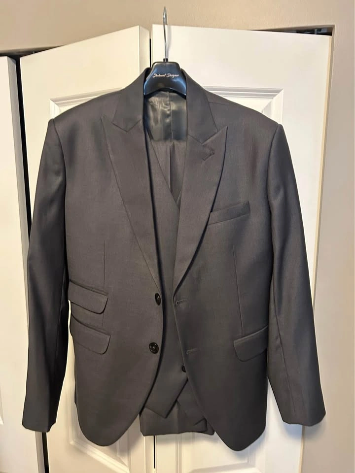Dark grey 3 piece custom tailored men's suit 38R Pants 32, peak lapels, just like Harvey Spector's style Great for office wear, someone around 5'7"-5'9" and 130 - 160 lbs Cash only Pickup in Langley 96 ave and 204 st
