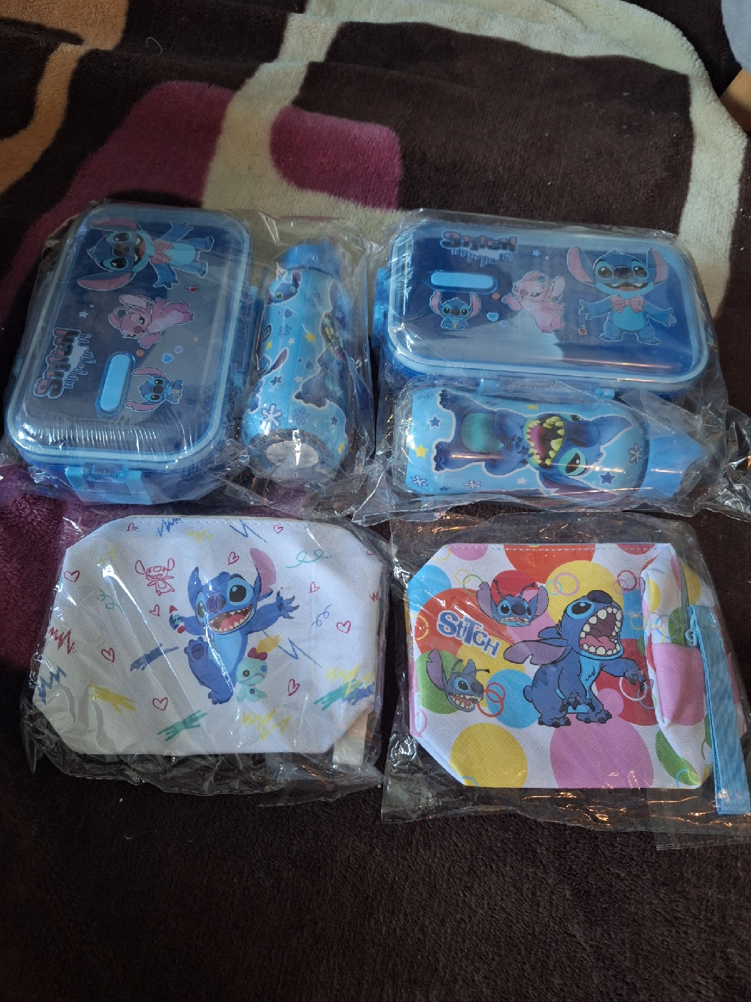 I have a brand new Stitch-themed lunchbox, water bottle, and pouch set with two mini backpacks! Perfect for any Stitch fan. The set includes a lunchbox, a matching water bottle, a cute pouch and a mini backpack. π All items feature fun Stitch designs and are still in their original packaging Get one lunch box and water bottle and your choice of pencil case and mini backpack for only $20 βοΈ