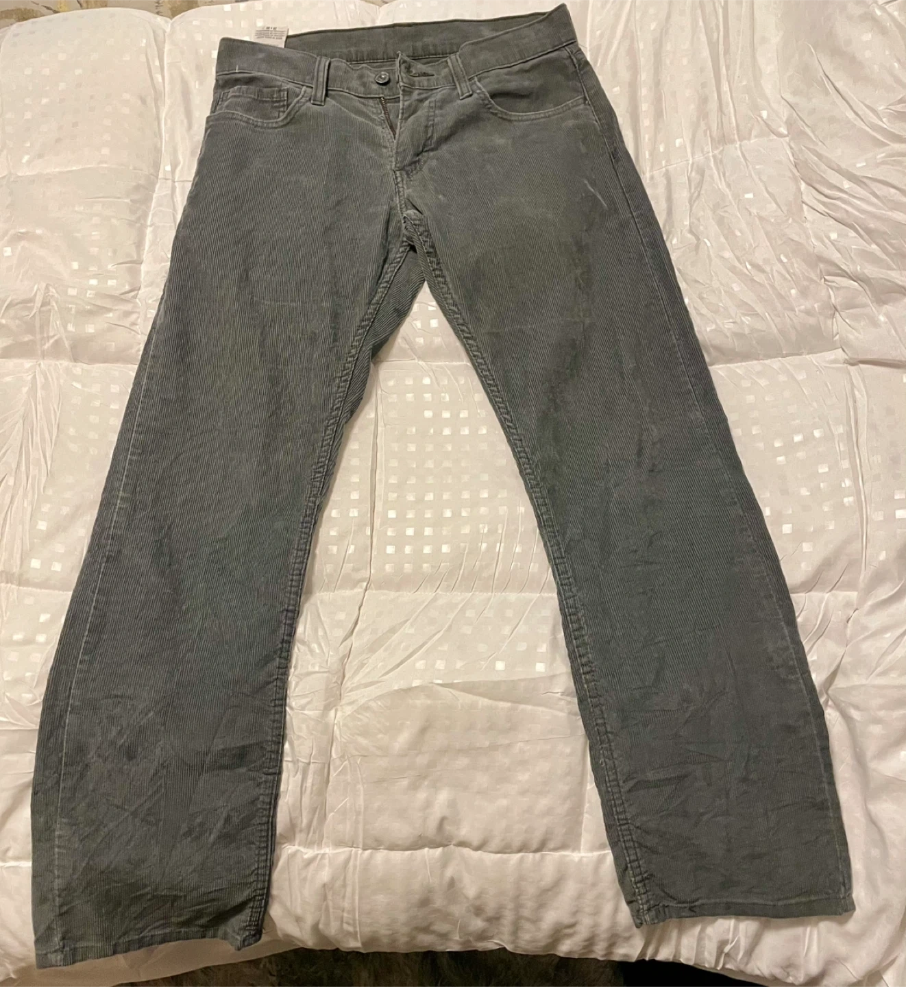 Selling a pair of Levi's 514 slim straight corduroy pants. They are size 29x30 and made of 84% cotton, 15% polyester, Good for a casual look, that’s retro! 1990’s