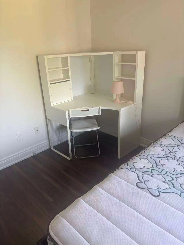 Selling a corner desk with a hutch and. It's in great condition and perfect for a student or home office setup. The desk has built-in shelves and a drawer for storage. The chair is a simple, foldable design that fits neatly under the desk when not in use ❗❗❗Price isn't negotiable address: Leslie and elgin mills delivery available