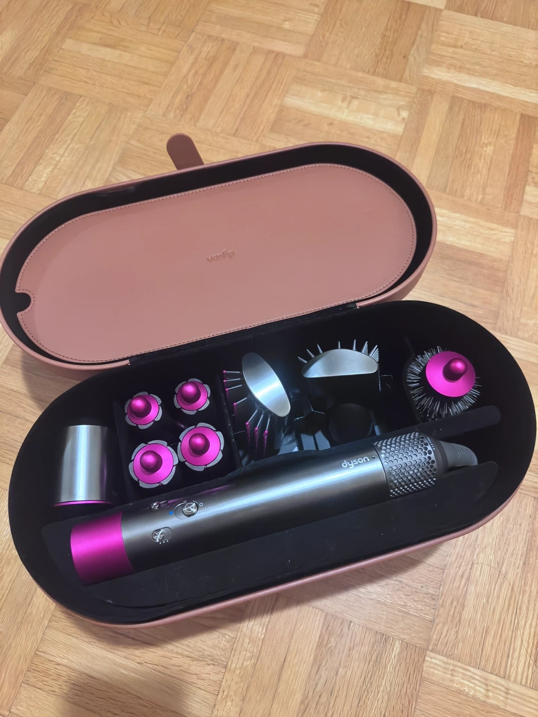 Authentic dyson airwrap Purchased about 4years ago Barely used it Working perfect, comes with all accessories Case has bit of damages, machine is like new
