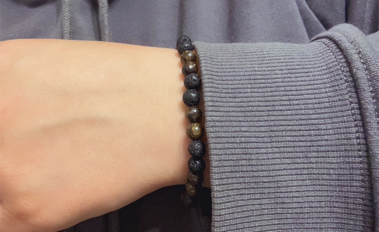 Selling a beaded bracelet made of lava stone and Bronzite. It's a lovely piece that adds a touch of natural elegance to any outfit
