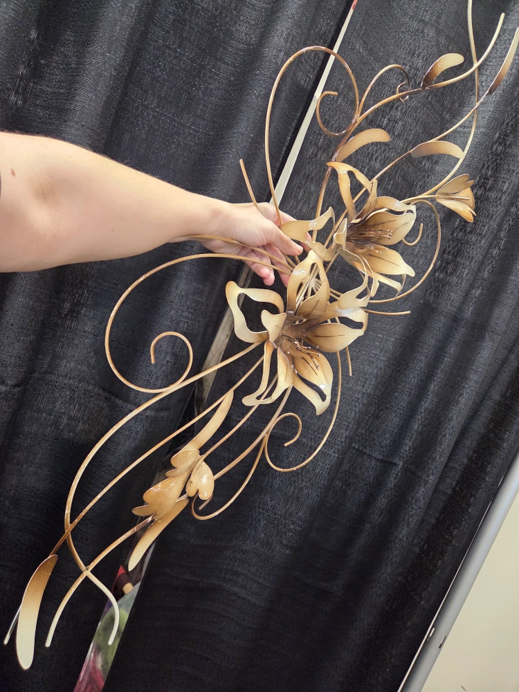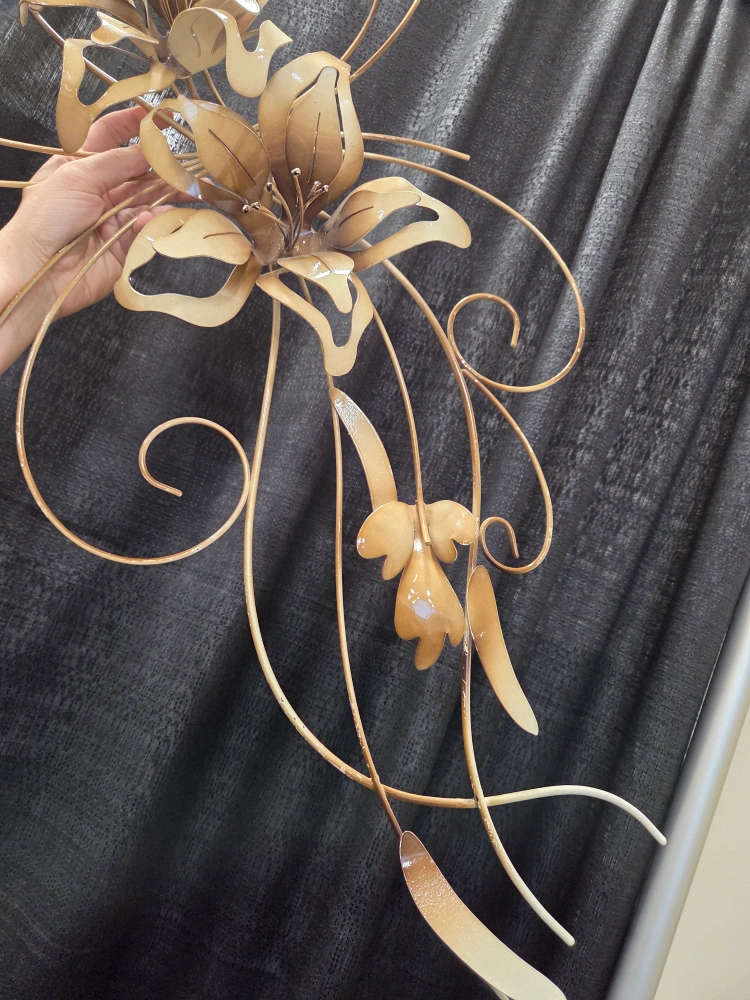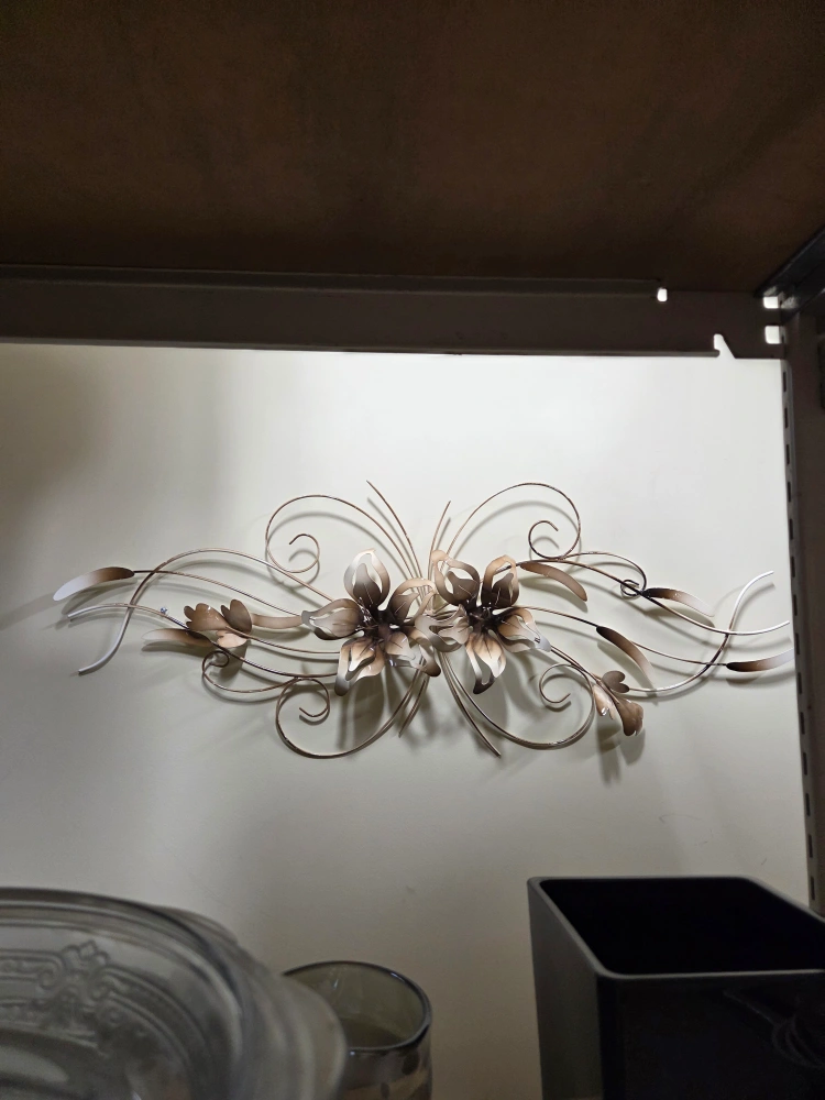 Lovely metal flower wall decor in a gold/bronze colour. It's a unique piece that would add a touch of elegance to any room minor wear some chipping of paint but structurally good and not visually noticeable unless your right next to it. Must pickup. Please. no etransfer or long holds. this is a cash price. bring cash. This is in storage and I will meet you there. I can access the building during 8 to 430 Monday to Friday. No one is there outside of those times.