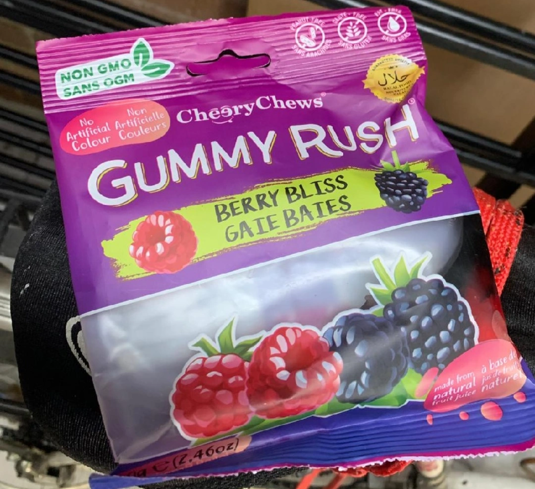 Selling a bag of Cheery Chews Gummy Rush in Berry Bliss flavour! These gummies are non-GMO and made with natural fruit juice. Perfect for a sweet treat!