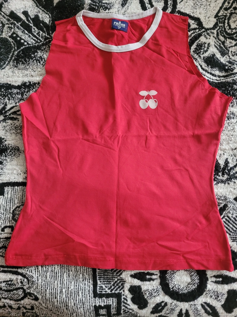 I'm giving away a cute red Pacha Ibiza tank top! It has a white trim around the neck and a cherry design on the front. The back has the Pacha Ibiza logo in white. Perfect for summer!