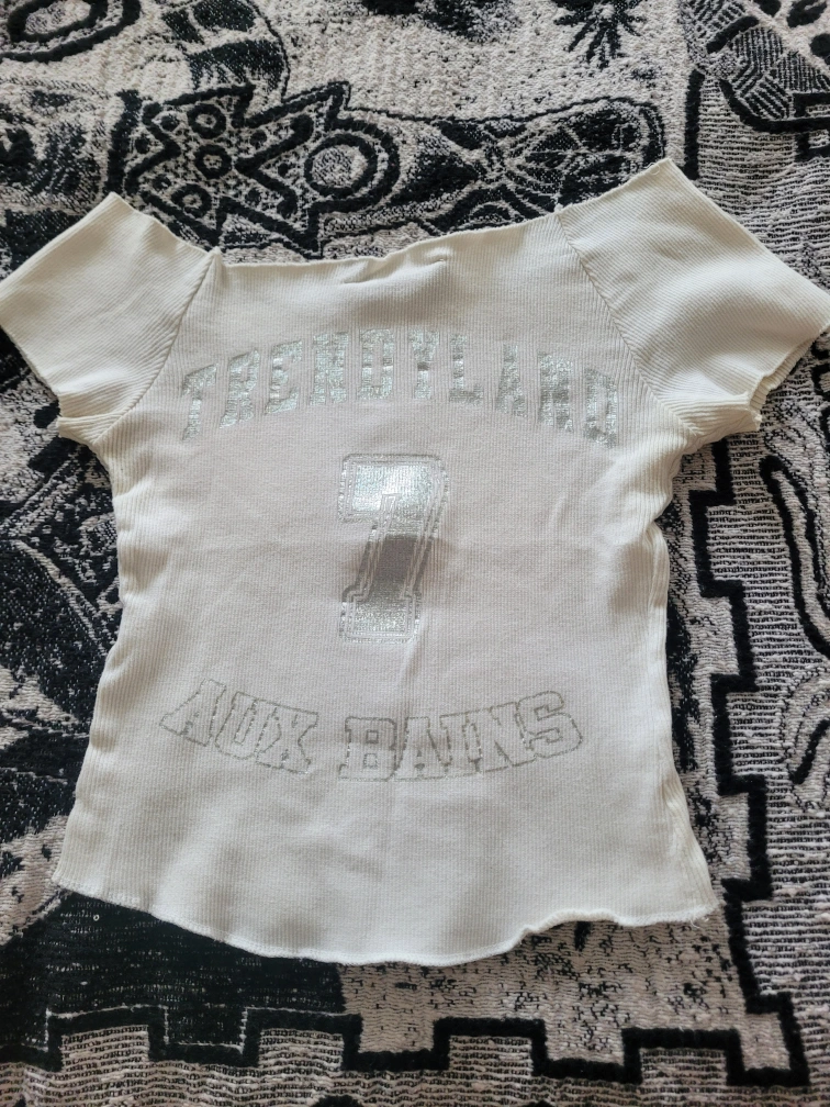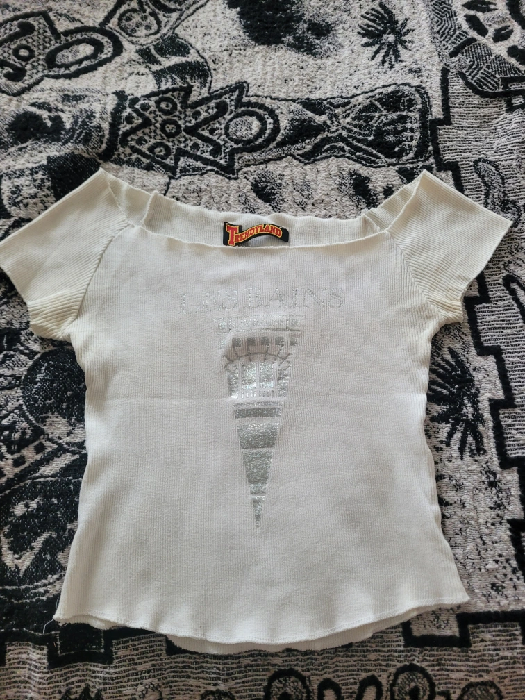 This is a cute Teddy Land ribbed t-shirt in white! It features a graphic design on the front and back. It's in great condition and ready for a new home
