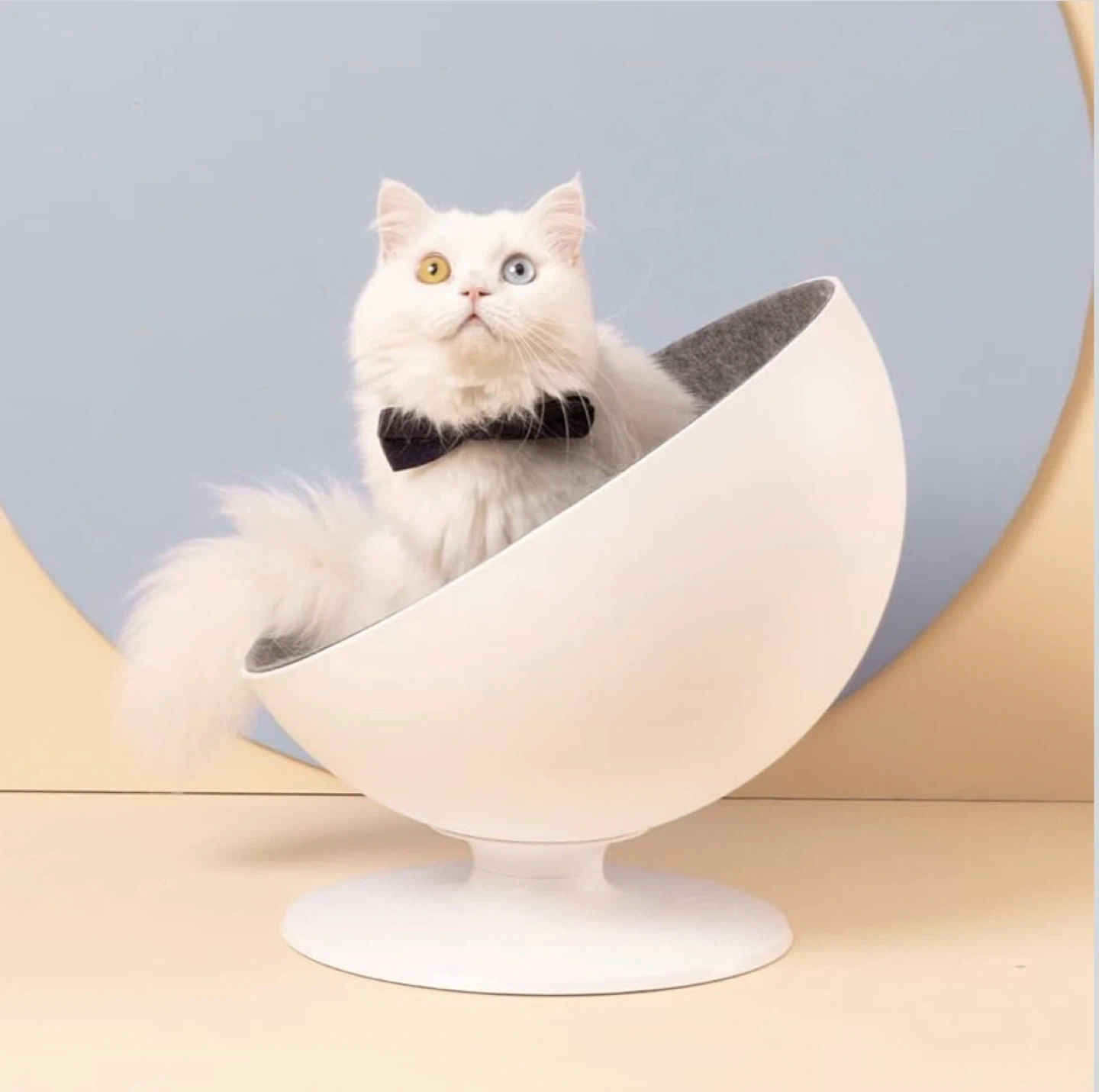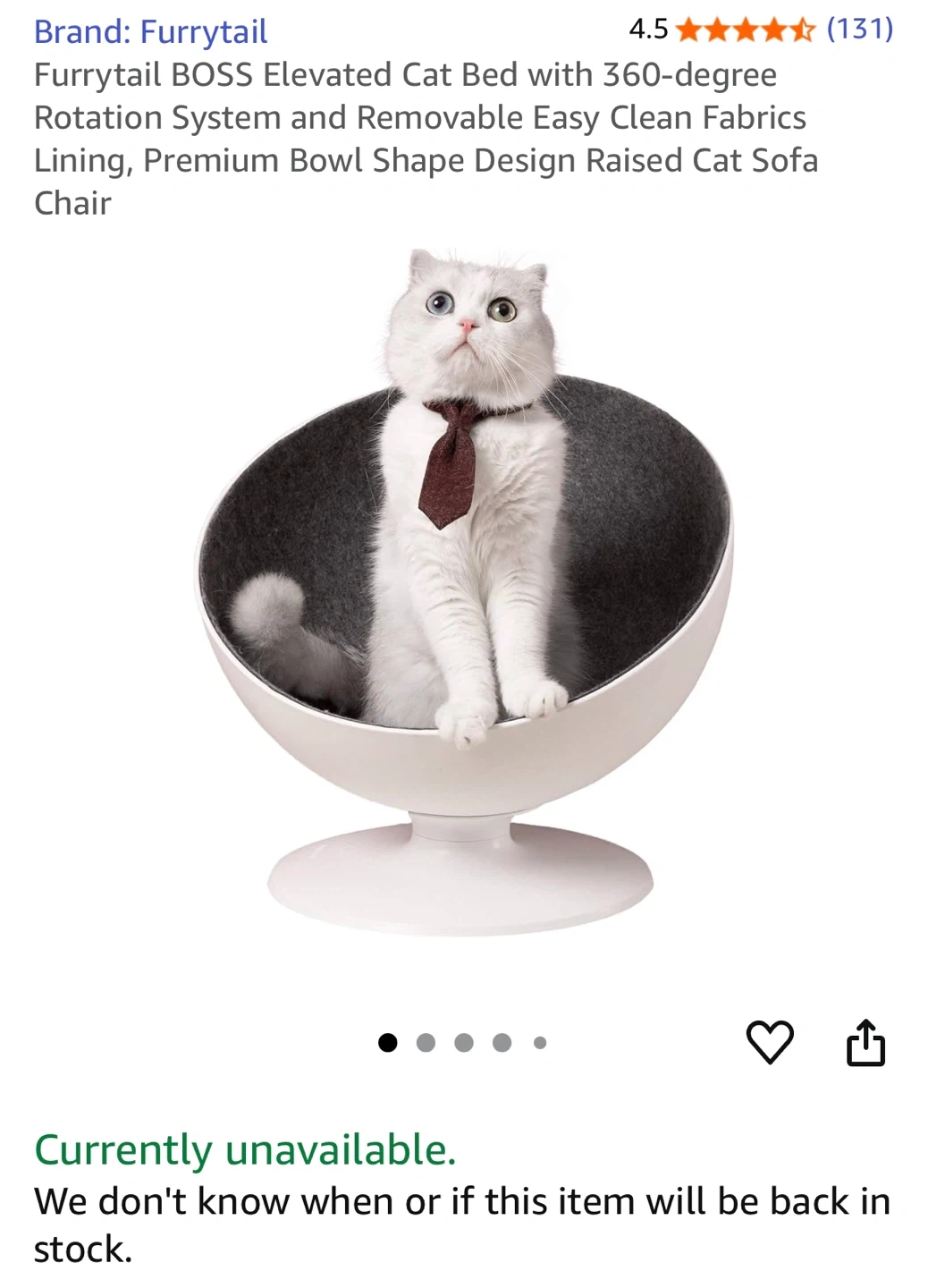 Selling a Furrytail BOSS Elevated Cat Bed. It features a 360-degree rotation system and removable, easy-to-clean fabrics lining. The bowl shape design makes it a raised cat sofa chair that your feline friend will surely love! Not great but in good shape. I see changes in the colors.
