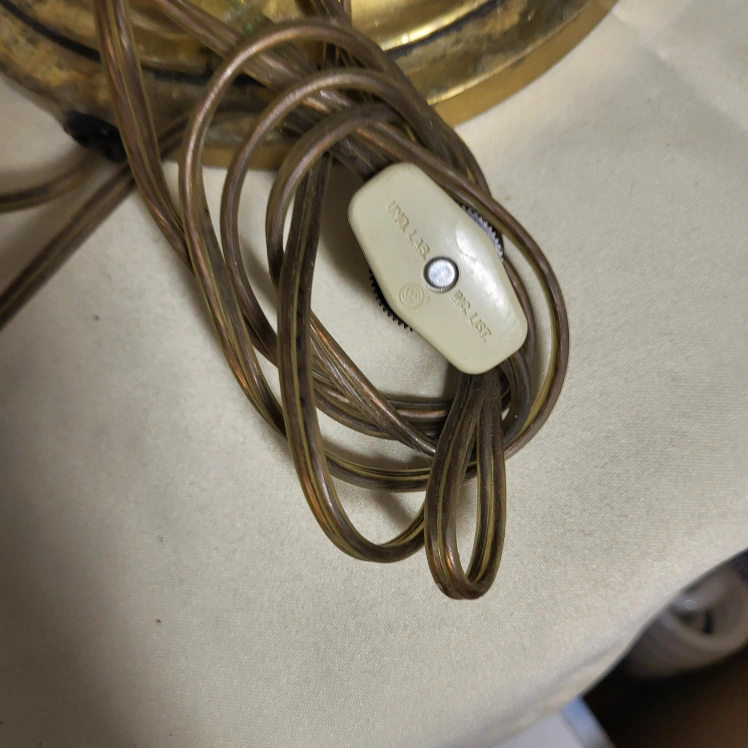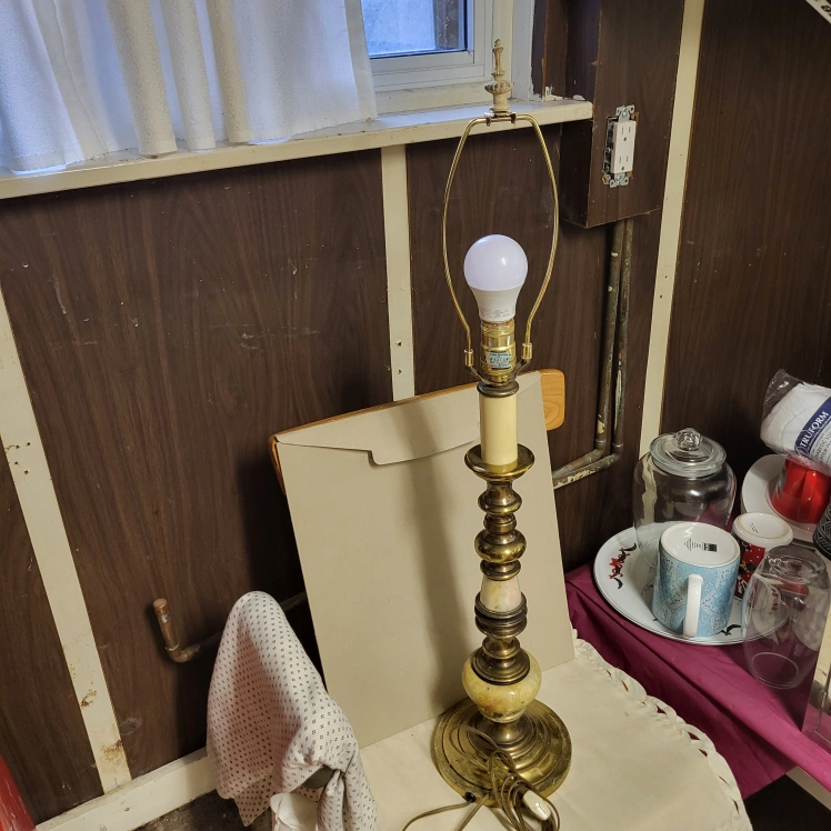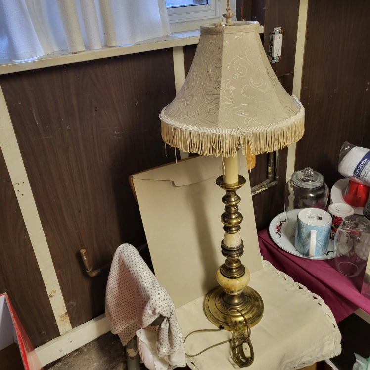 Selling a charming vintage brass table lamp. It features a classic design with a decorative shade. Perfect for adding a touch of elegance to any room!