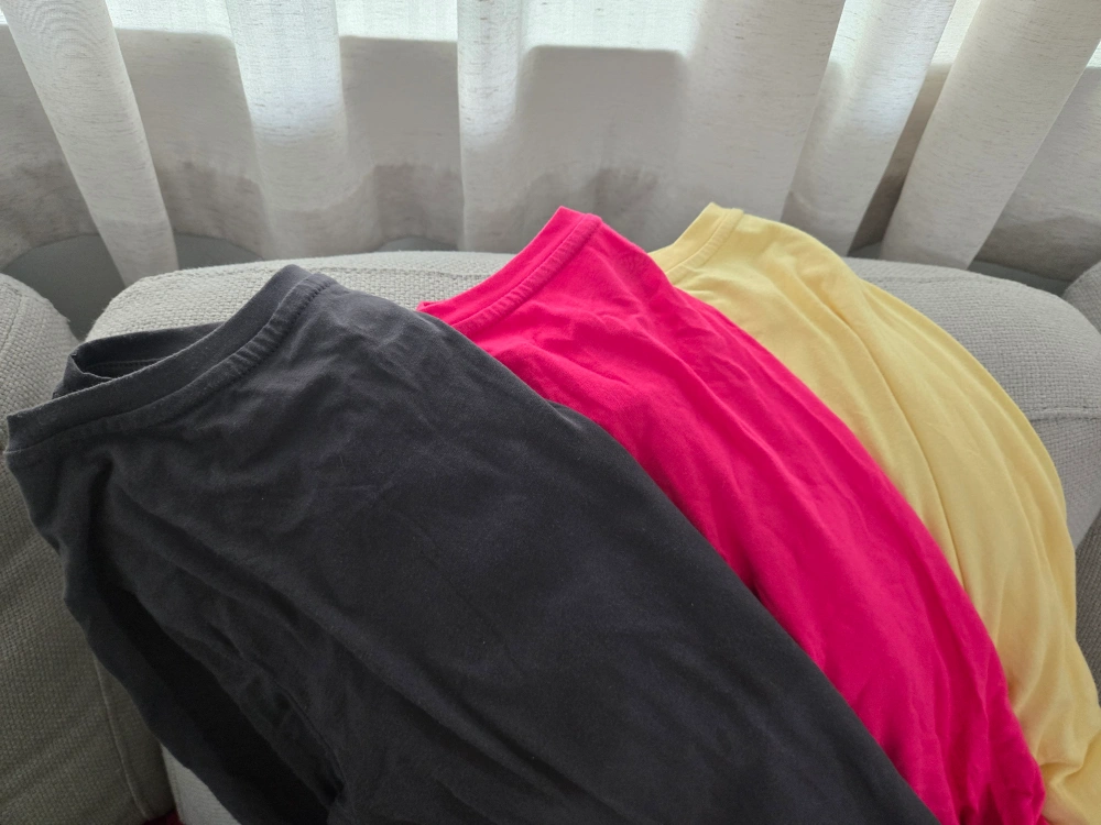 $8 for all THREE under scrubs tops. Extremely soft, breathable cotton blend. Fuchsia pink, canary yellow and grey. Size Medium