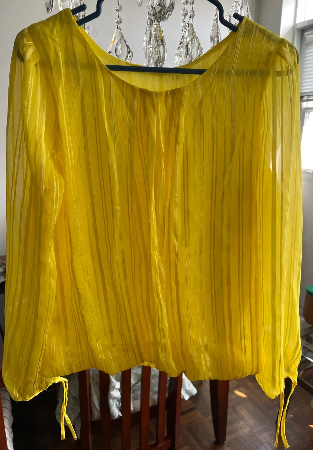 Here's a lovely yellow long sleeve blouse! It's in great condition and ready for a new home. Perfect for adding a pop of colour to your wardrobe