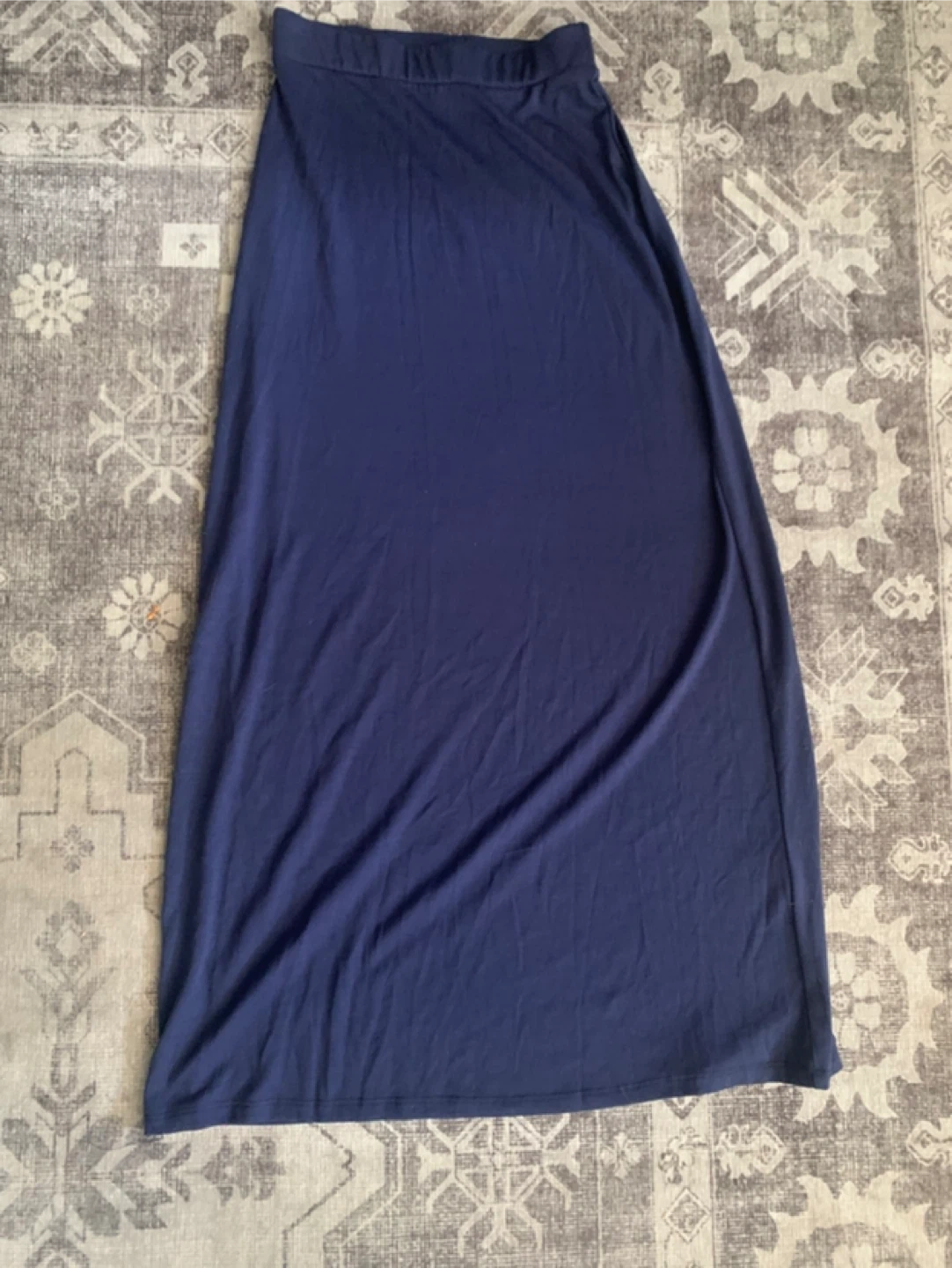 Selling a lovely navy blue maxi skirt from UK2LA. It's a size XS and made of 95% polyester and 5% spandex. Super comfy and perfect for everyday wear!